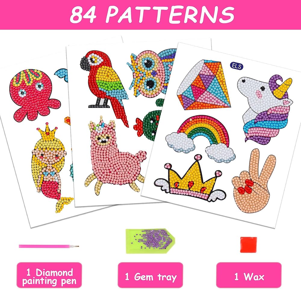 【What's in the Package】Come with 84 different cute ready to decorate stickers, diamonds, and tool kit. Everything that is needed to complete 84 unique diamond creations!