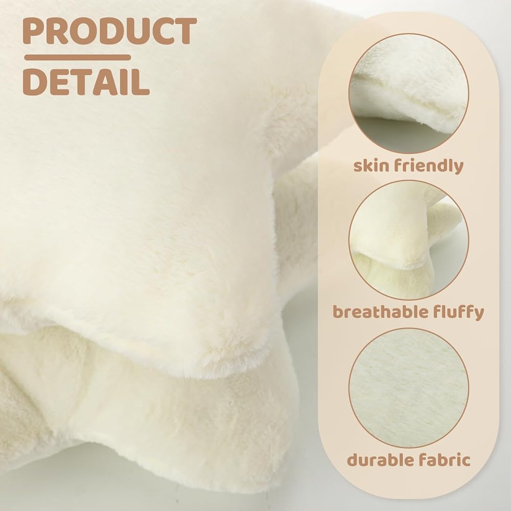 Features: With beautiful colors, the decorative throw pillows are beautiful and stylish, making people feel comfortable at first sight. These stuffed star pillows are ideal decorations to put in your living room, bedroom, study, or any place you like, adding more charm and interest to your space. Specifications: Material: short plush, filled with PP cotton Color: white Size: approx. 15.7 x 15.7 inch (length x width) Package includes: 2 x Star shaped pillows Notes: Manual measurement, please allow slight errors on size. The color may exist a slight difference due to different screen displays. The pillow will wrinkle slightly due to the vacuum packing, but you can pat it hard to fluff it up again.