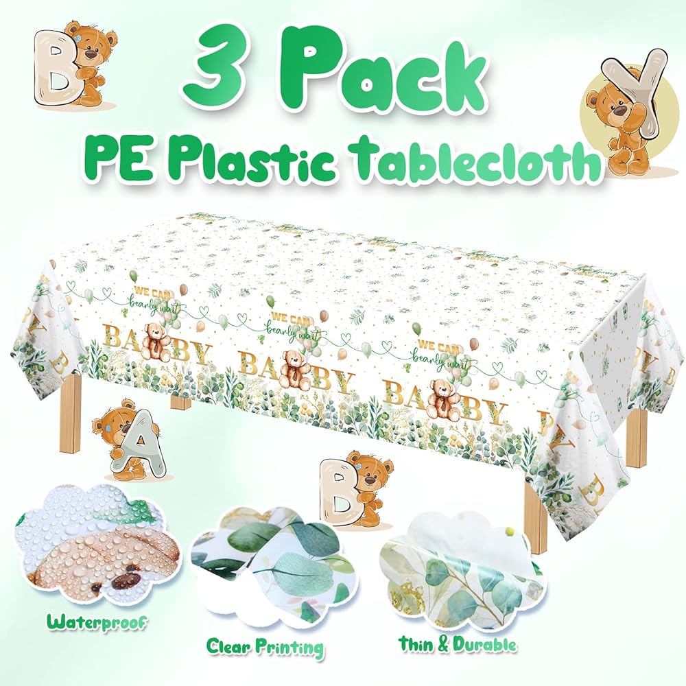 Bear Baby Shower Decorations: this bear party plastic tablecloth is a good complement to teddy bear themed birthday party, baby shower party and baby gender reveal party decoration, which will leave a deep impression on everyone attending the party
