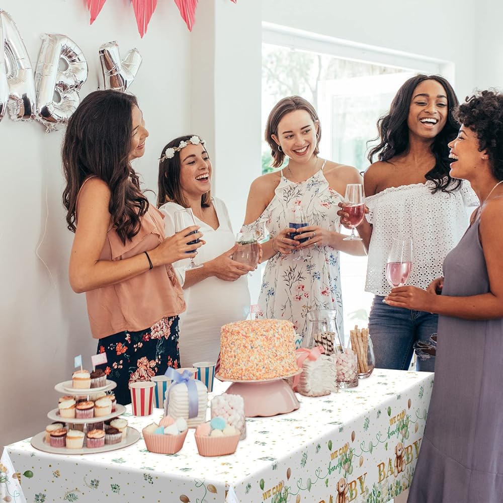 Quality Plastic Material: the baby shower tablecloth is made of PE plastic, disposable, tough and not easy to tear, waterproof, can protect your table from dirt and scratches; This plastic tablecloth is light and portable, and can be carried anywhere