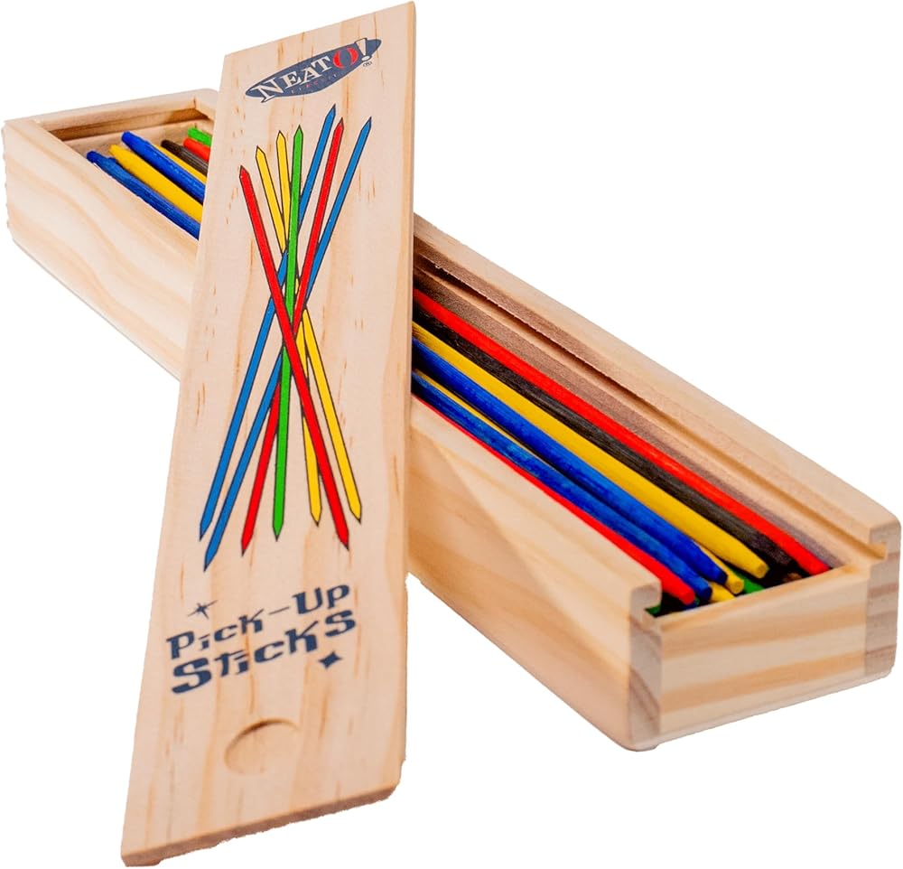 The Toysmith 41-Piece Pick-Up Sticks Game provides hours of fun for one or more players. This simple yet classic game hones hand-eye coordination and helps develop a child's fine motor skills. The game consists of 41 thin wooden sticks in assorted colors, each measuring 9.5-inches long. A handsome wooden storage case keeps the sticks together when not in use. This toy is suitable for indoor or outdoor play. Suitable for all ages.