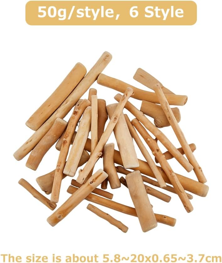 6 Styles:You will get 300g driftwood branches in 6 styles.Each piece is unique and measures between 0.19" to 0.65" inches in length,,0.02" to 0.07" in width and have flat sides with smoothed edges.