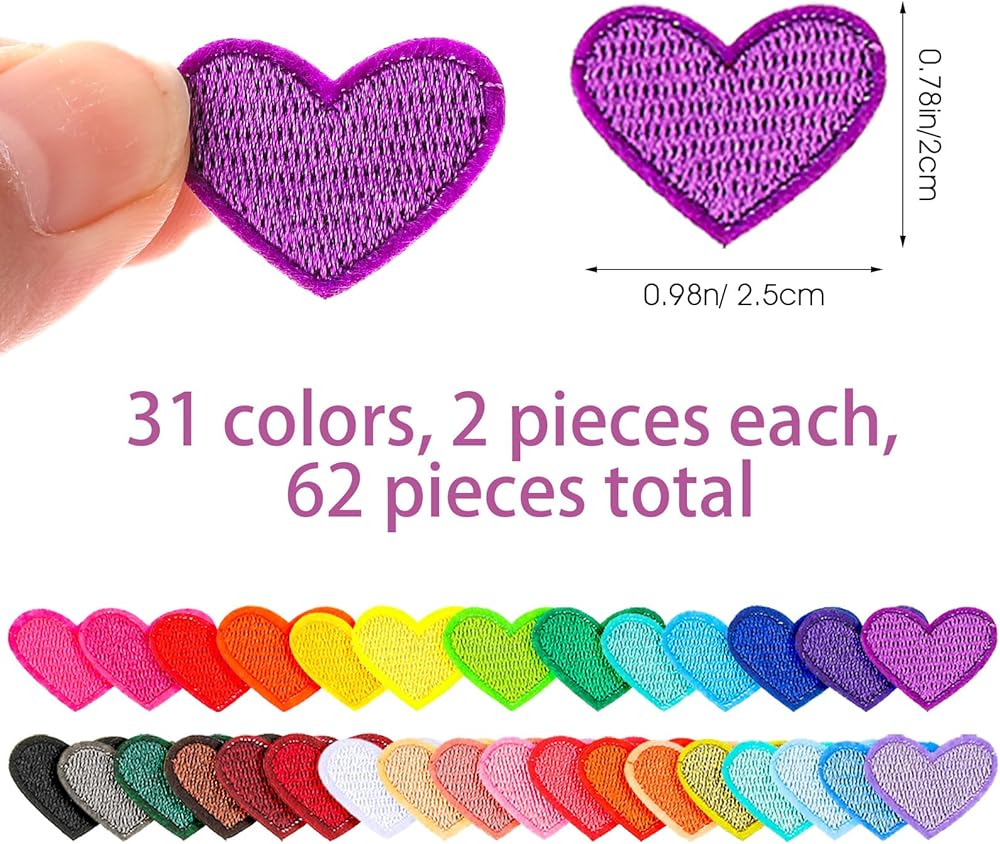Teaaha 62 PCS Heart Patch Mini Heart Iron on Patches Cute Embroidered Sew on Love Applique Patches for Jeans Jackets Hats Bags Backpacks Clothes DIY Craft Repair Decorations(31color)
