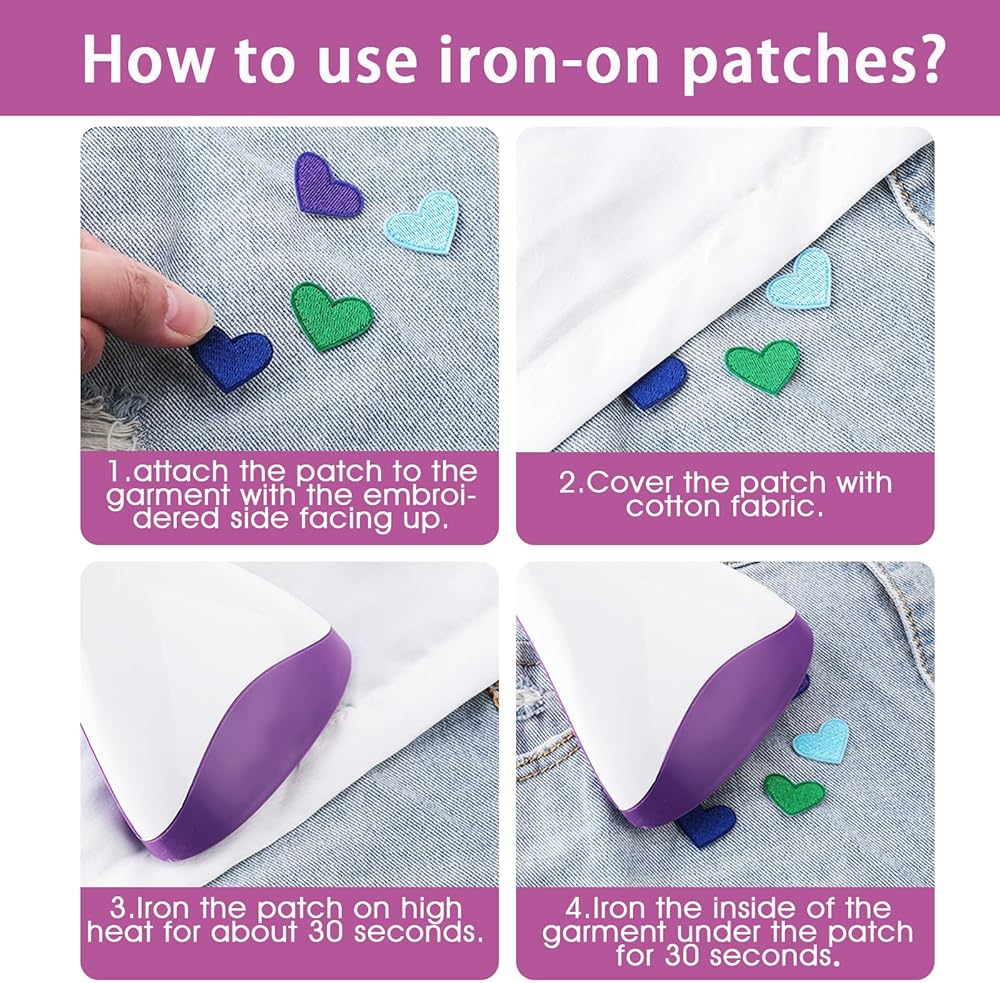 Wide Application: Iron on hearts is a fun way to repair clothes or cover up tears or holes. Iron on patches for clothes are perfect for clothes, curtains, pillows, scarves, quilts, jackets, dresses, vests, jeans, bags, pants, T-shirts, skirts, hats, shoes, tablecloths, bedding, etc., and are also very Suitable for manual DIY. Personalize your accessories with these heart iron on patch!