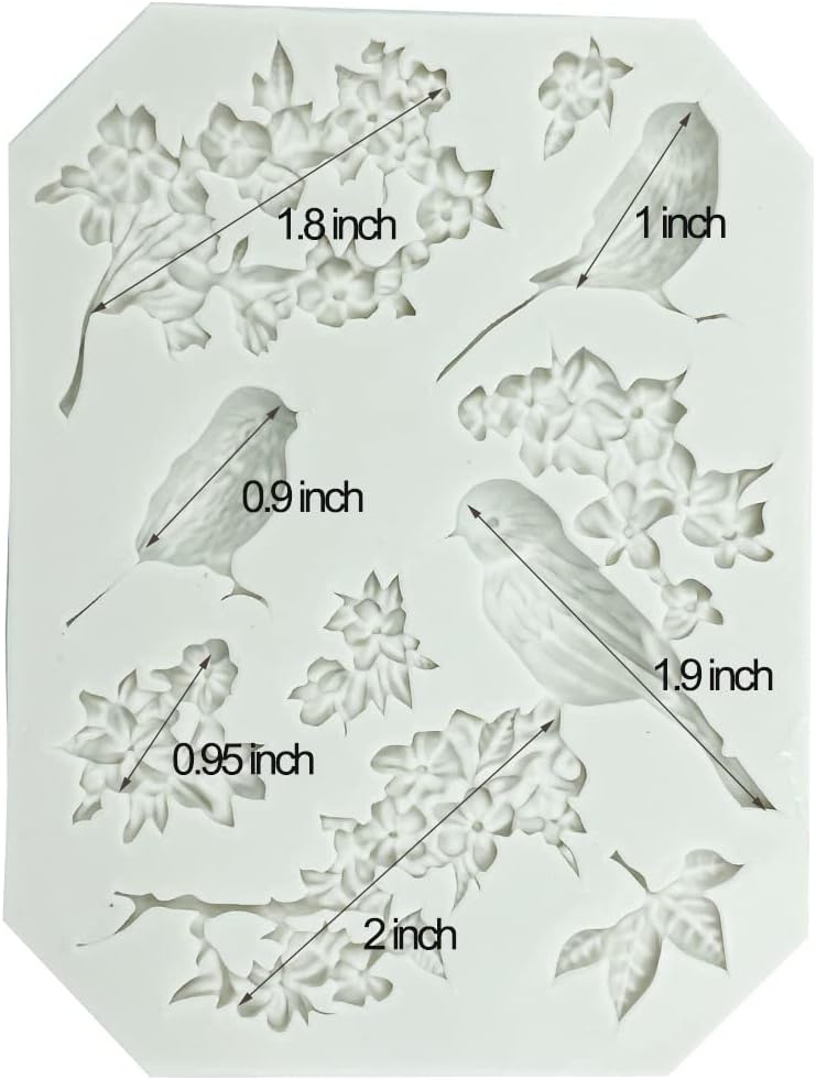 3D Birds Blossoms Silicone Fondant Mold, Animal Bird Plum Flower for Making Chocolate Fondant Jelly Polymer Clay Soap Crafting DIY Projects Cake Decoration Baking Tools