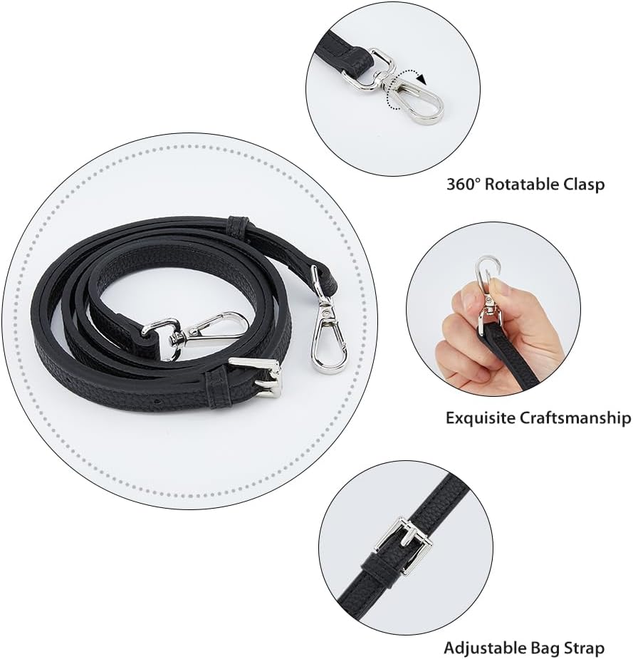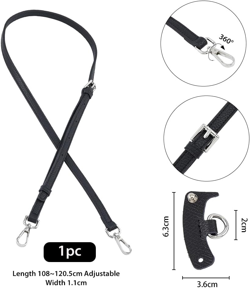 SUPERFINDINGS Leather Purse Straps Black Crossbody Replacement Straps 108~120cm Adjustable Shoulder Strap with No Punch Bag D Ring Extra Strap Accessories for Crossbody Handbag Clutch Bag