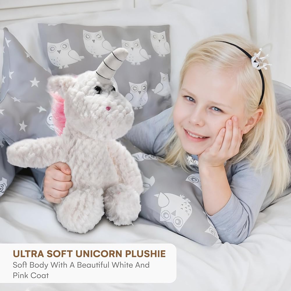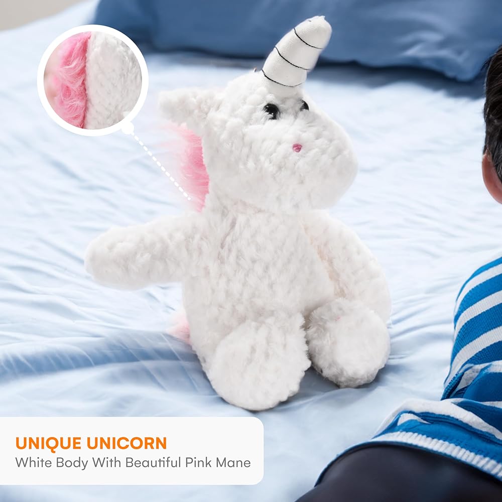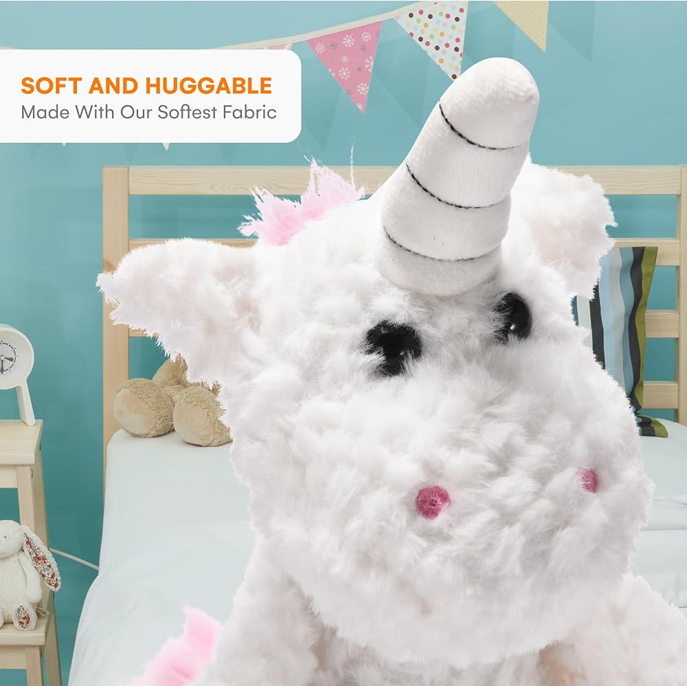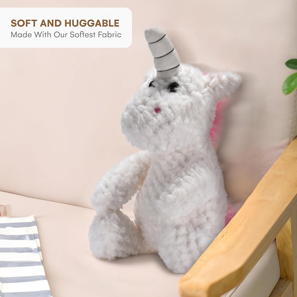 CHILDLIKE BEHAVIOR | Plush Unicorn Stuffed Animal White and Pink - Soft Fluffy Unicorn Toy - Huggable Plush Toy for Toddler - Realistic Design - Fabric Great for Little Ones to Cuddle