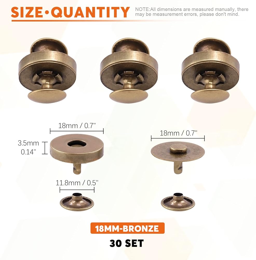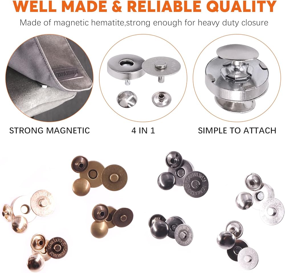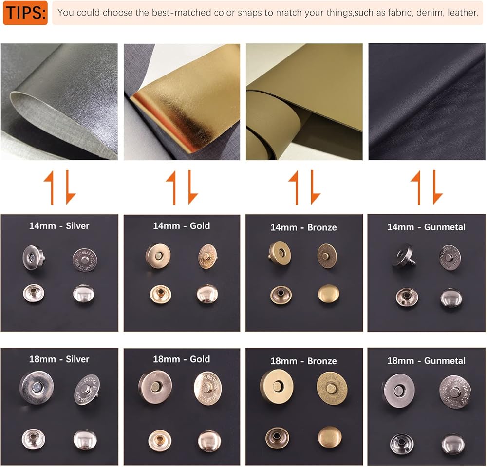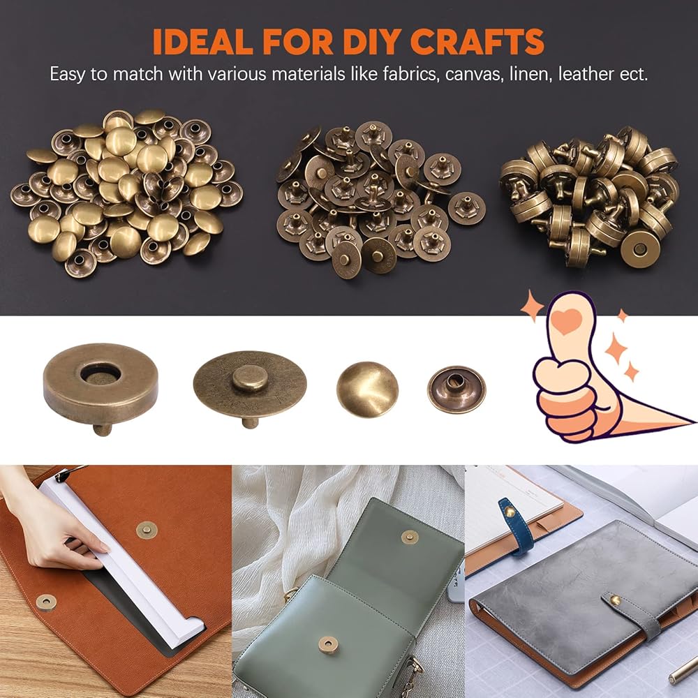 ●1. Premium material: Made of quality metal plated with classic colors. Ideal for various materials like fabrics, canvas, linen, leather ect.