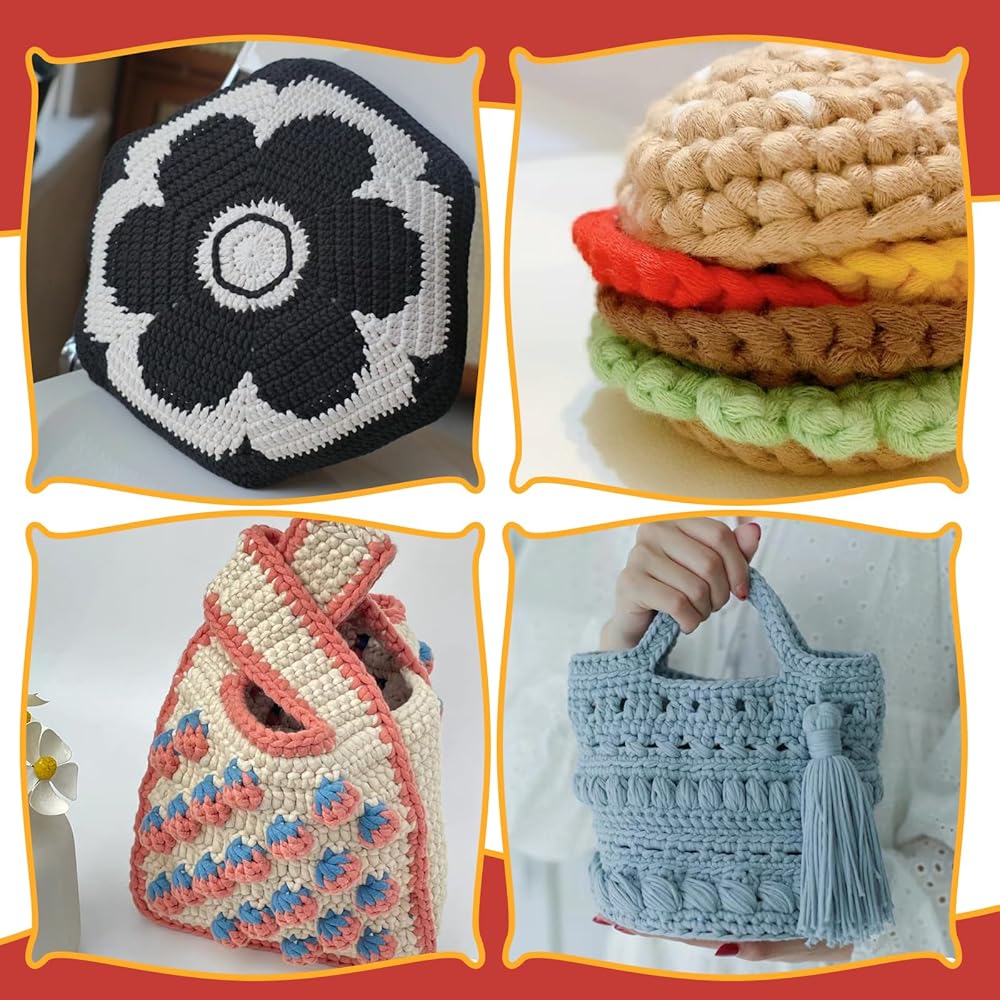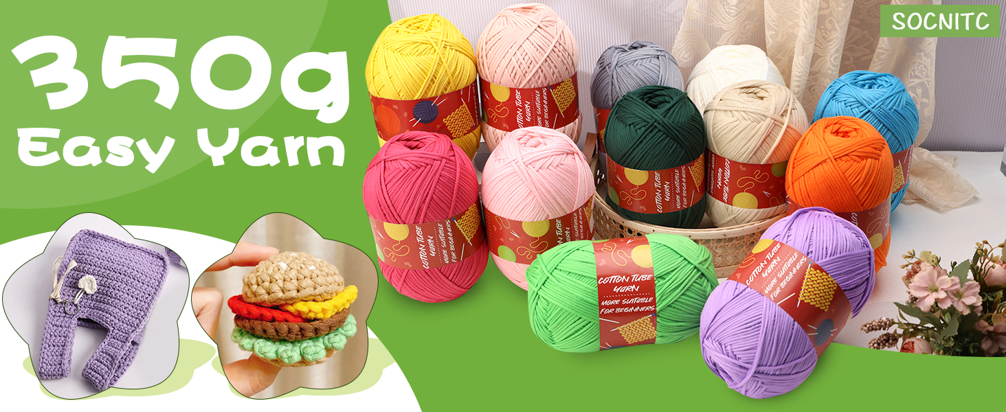 【350g Yarn for Crocheting】This easy yarn is made from high-quality material, the yarn is soft and comfortable to the touch, making it perfect for crocheting beautiful craft projects. Each roll has a heavy weight of 350g and is of sufficient length. Also included is a dedicated 3.0mm red aluminum crochet hook, 20 pieces of random colored easy-to-see stitches, and 3 pcs each of 7cm and 9cm plastic large eye needles to help you complete your crochet projects.