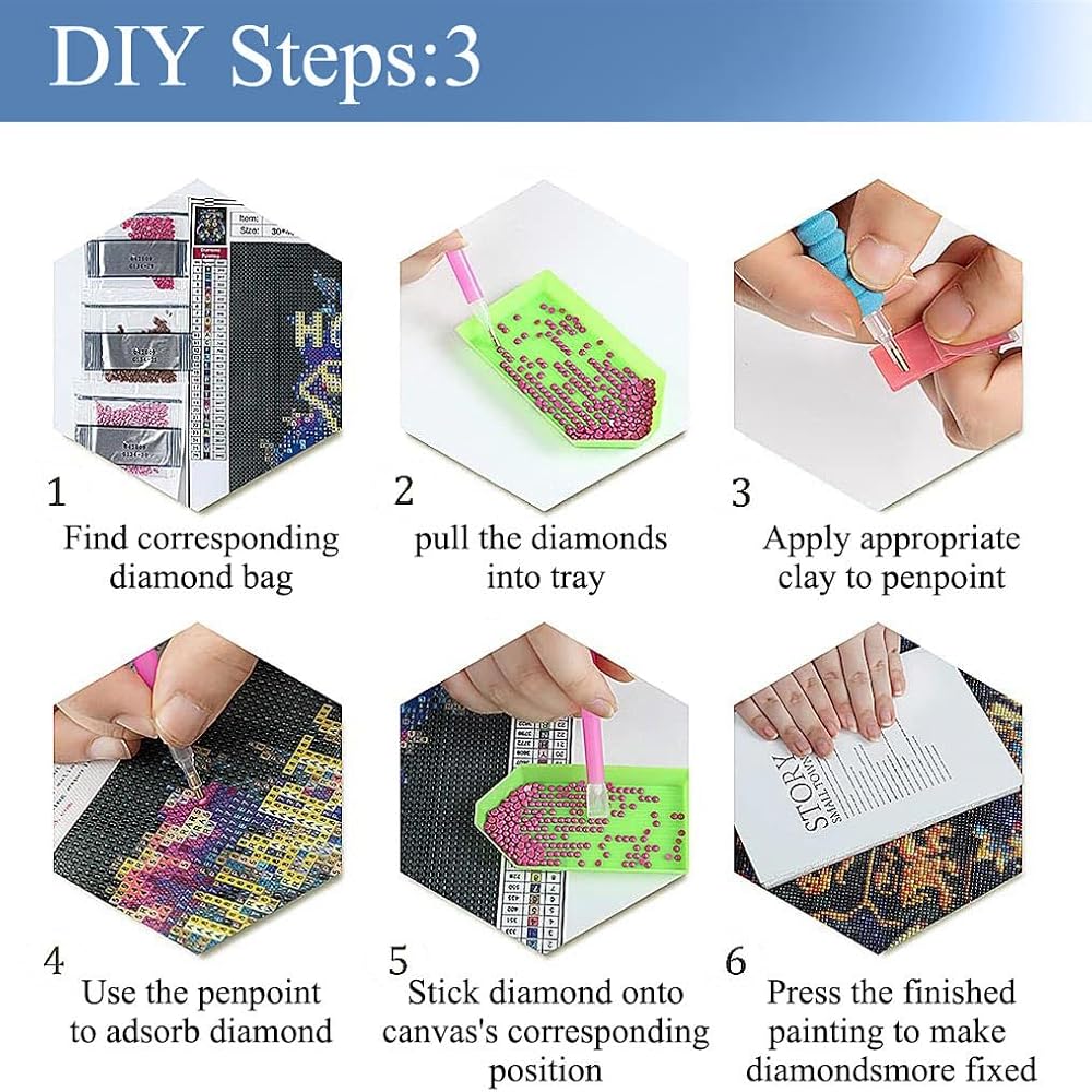 All the tools needed to make a diamond painting are included. Each part is marked with a small number or letter to show the correct color. Therefore, it can be completed by beginners of all ages and experience levels. Our diamond art provide you with shiny and unique diamonds.