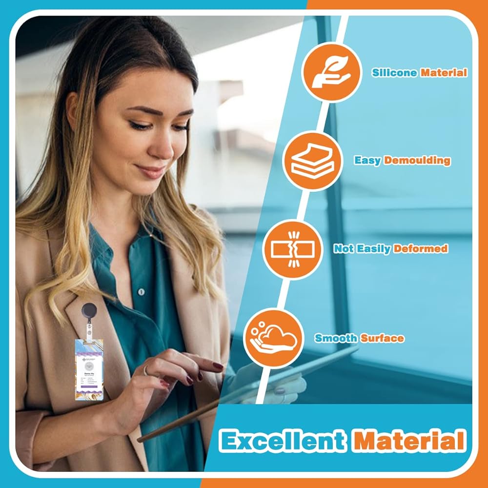 Excellent quality: Badge reel molds for epoxy is made of 100% food grade silicone material, resistant to high temperature and low temperature, smooth surface, strong softness and toughness, not easy to deform or tear, easy to demold and clean, ID card roll clip is made of AS frosted material The metal clip is installed on the back, which is convenient to wear, not easy to fall, and can be used repeatedly.