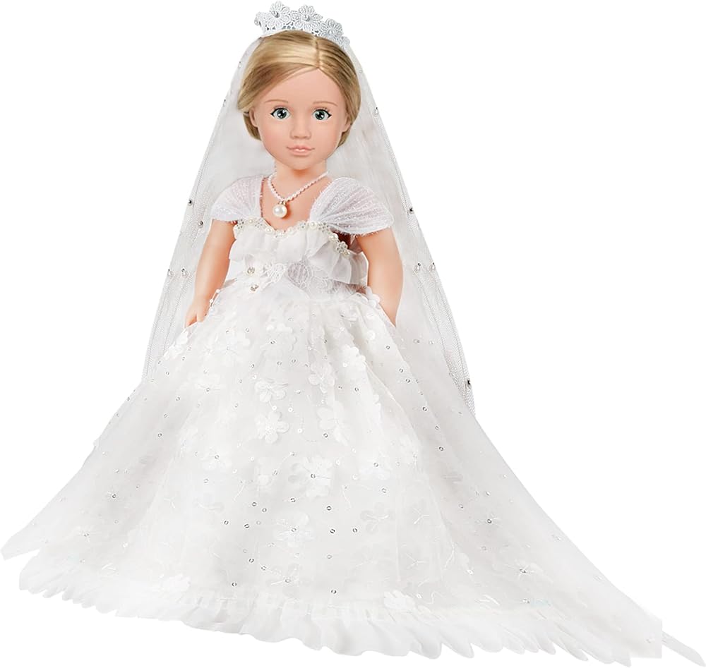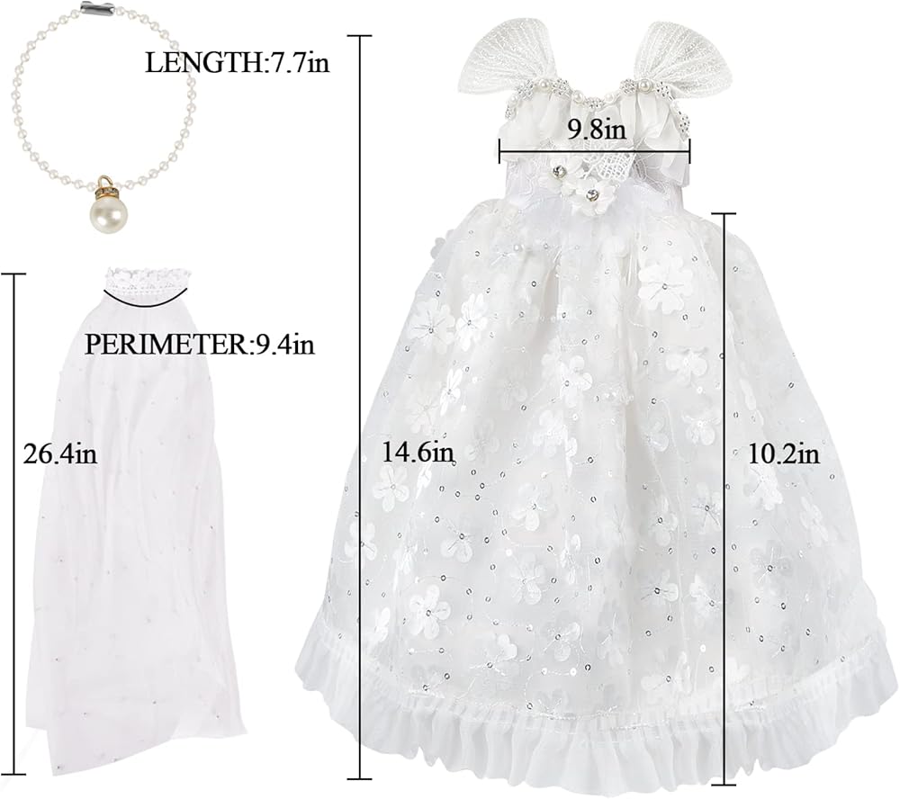 —— Doll Wedding Dress with Veil and Pearl Necklace for Girls Gift