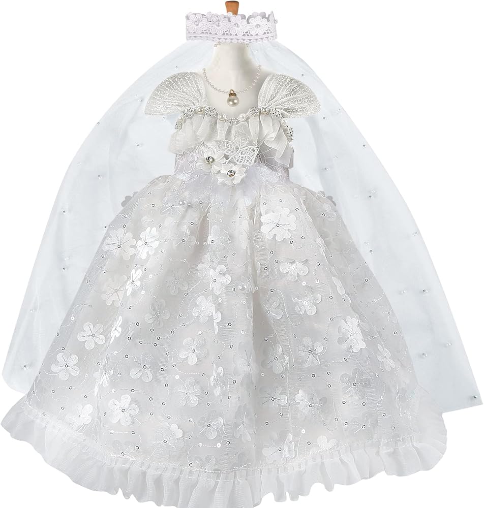 Package Includes:1 wedding doll dress + 1 long veil + 1 necklace