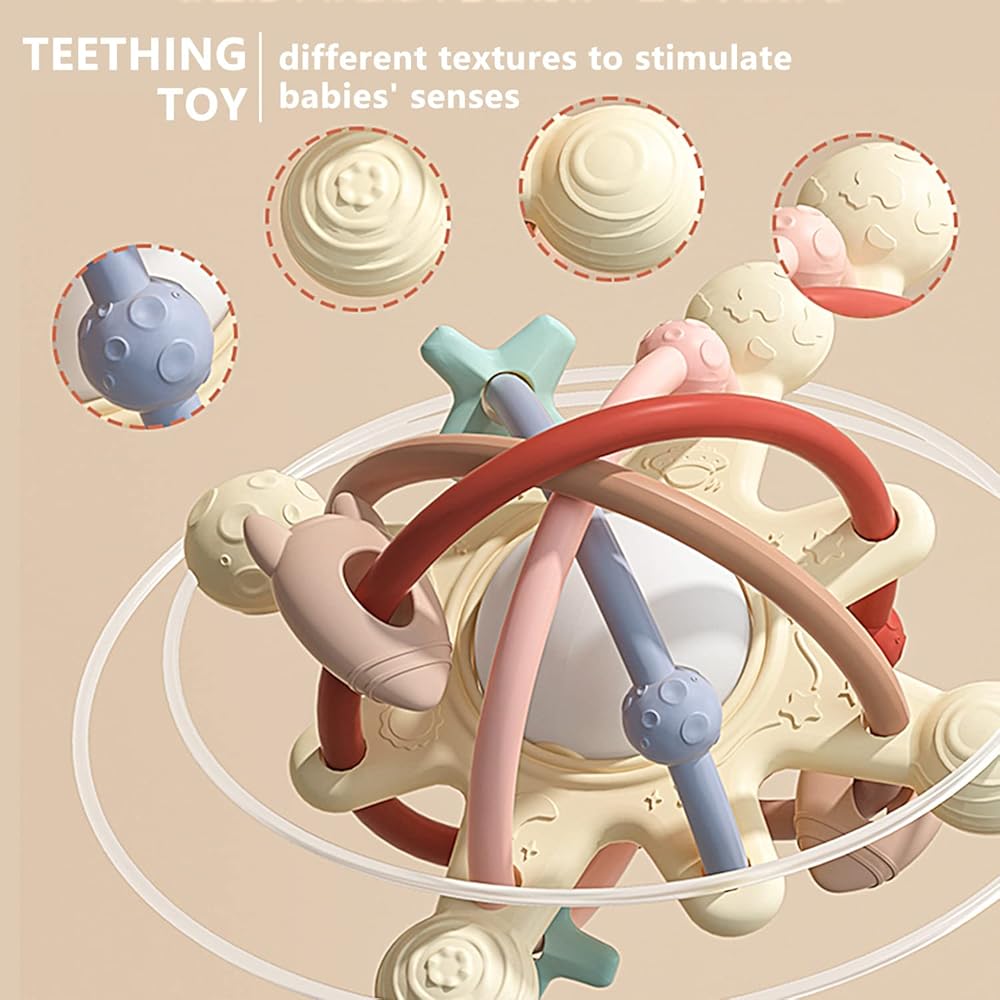 【Development infant toys 0-6 months】: Our cute starry sky-shaped toy is made with different textures on the body to stimulate babies' senses. The soft silicone loops and cute shape beads make this baby teething toys easy to chew on and build muscles
