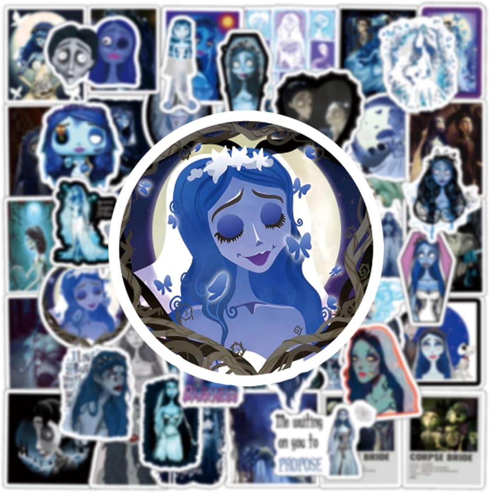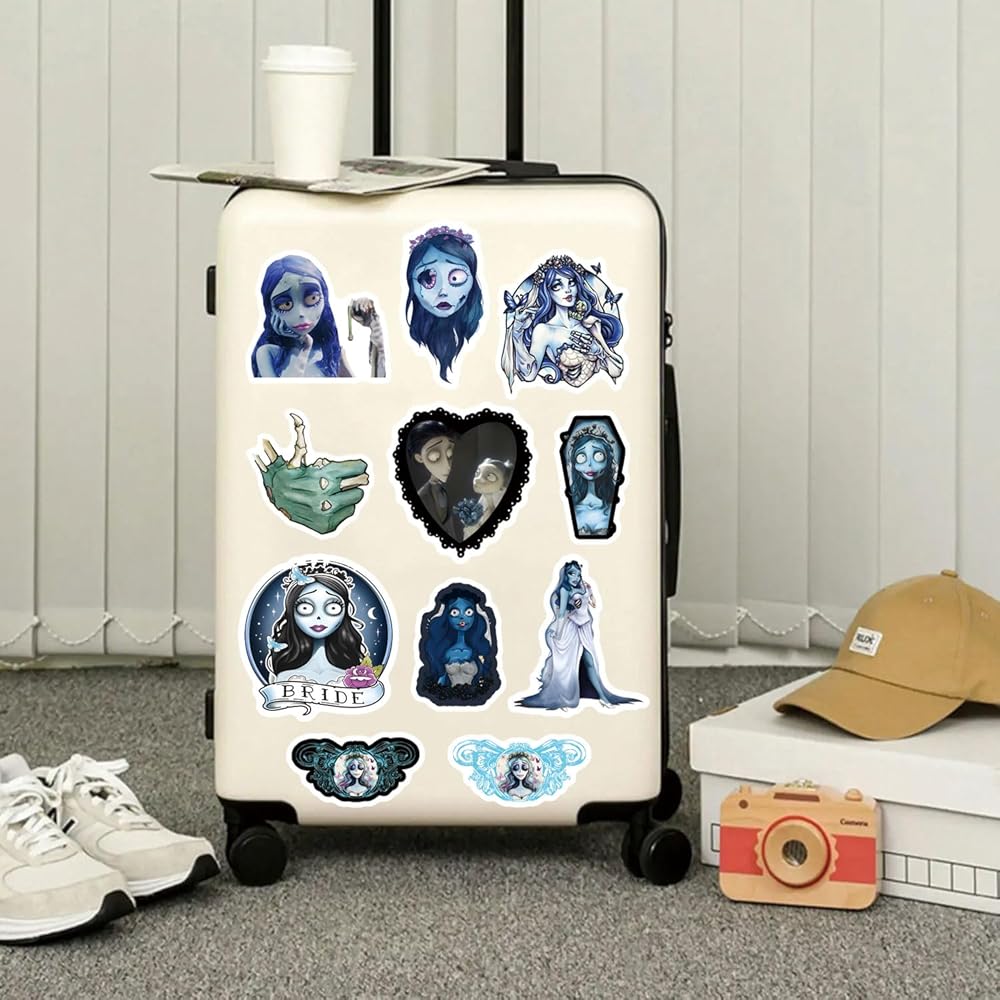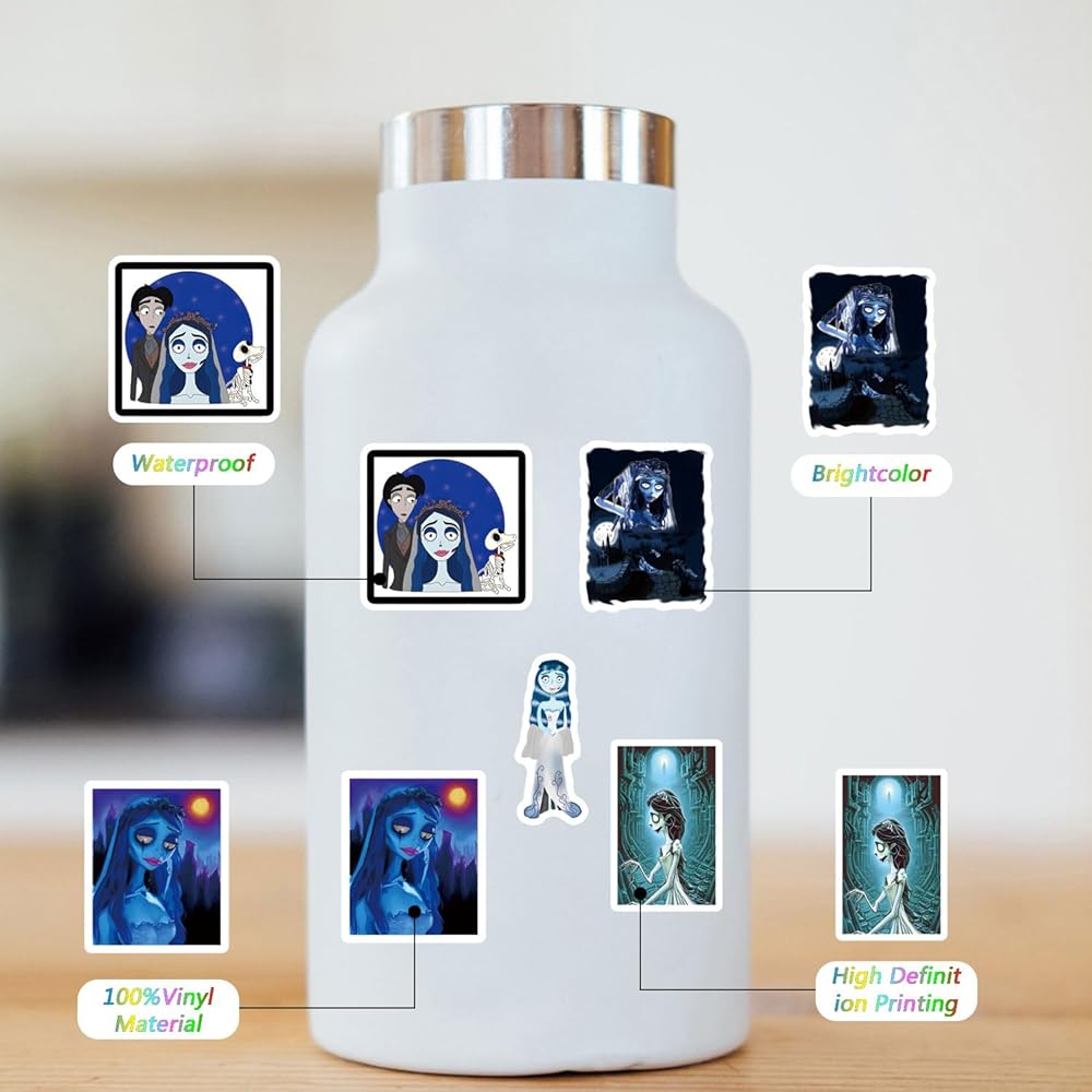124Pcs Corpse Bride Stickers Pack,Aesthetics Cute Cartoon Movie Vinyl Waterproof Decals for Water Bottle, Laptop, Phone, Skateboard, Journaling for Kids Teens Girls Adults for Party Supply