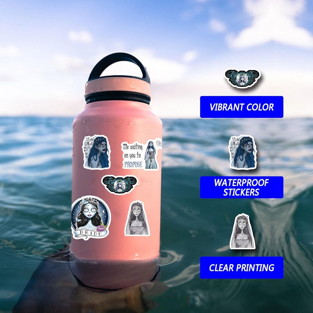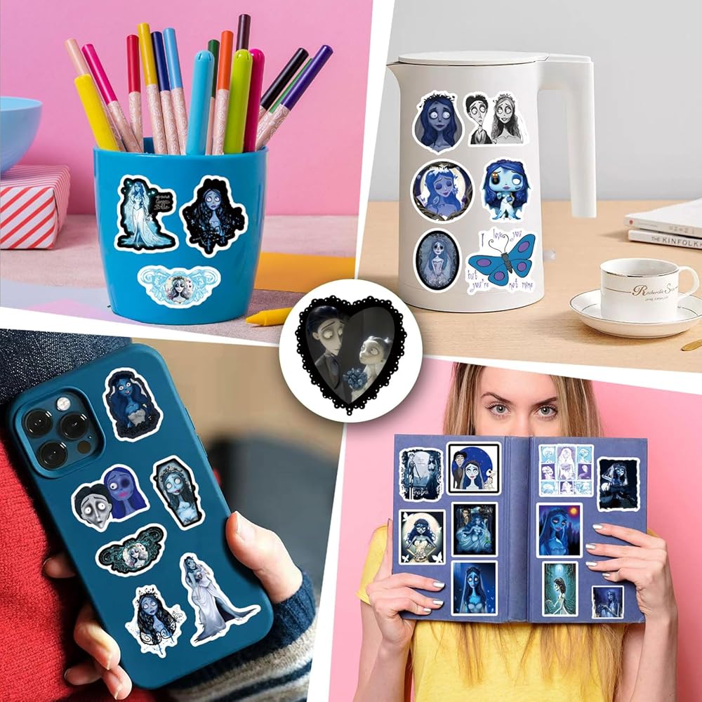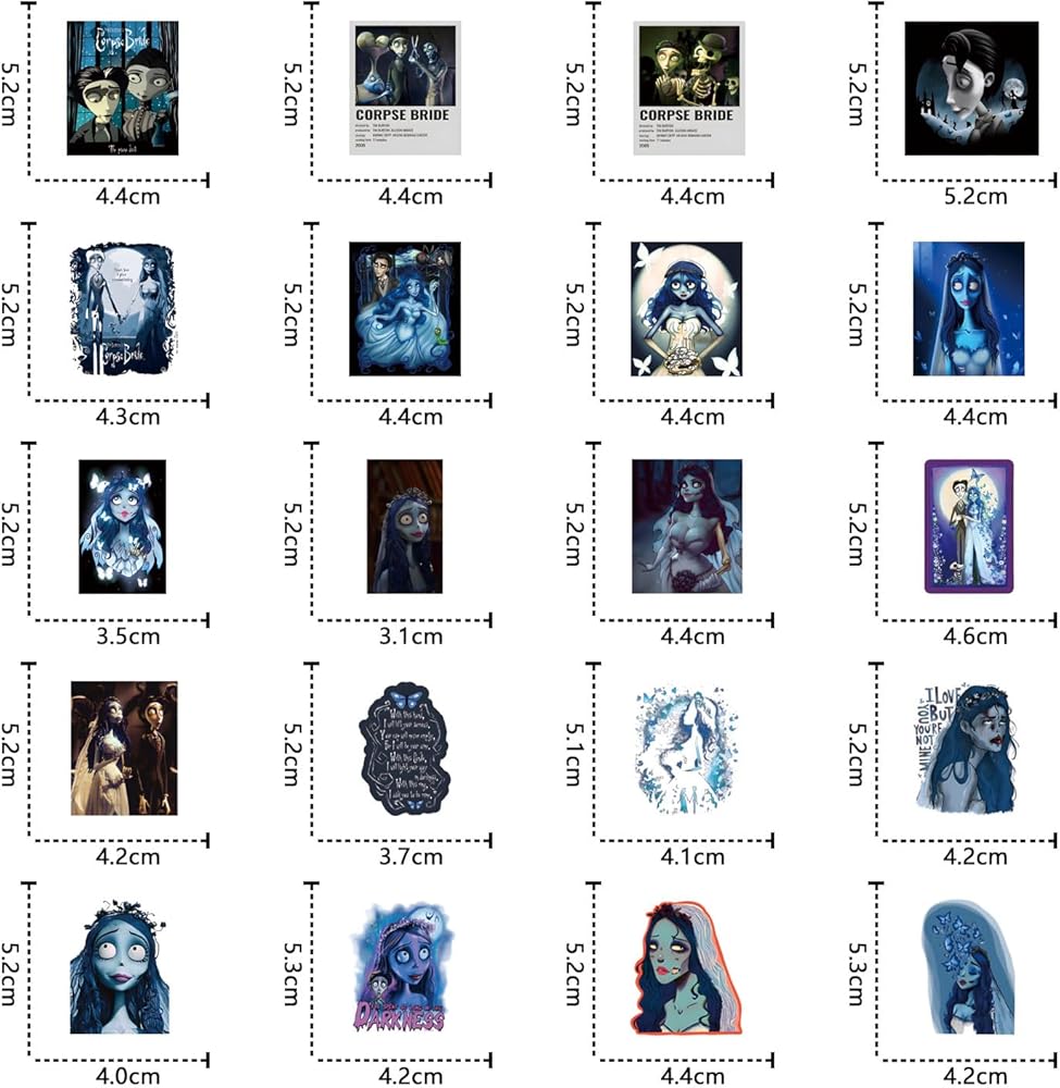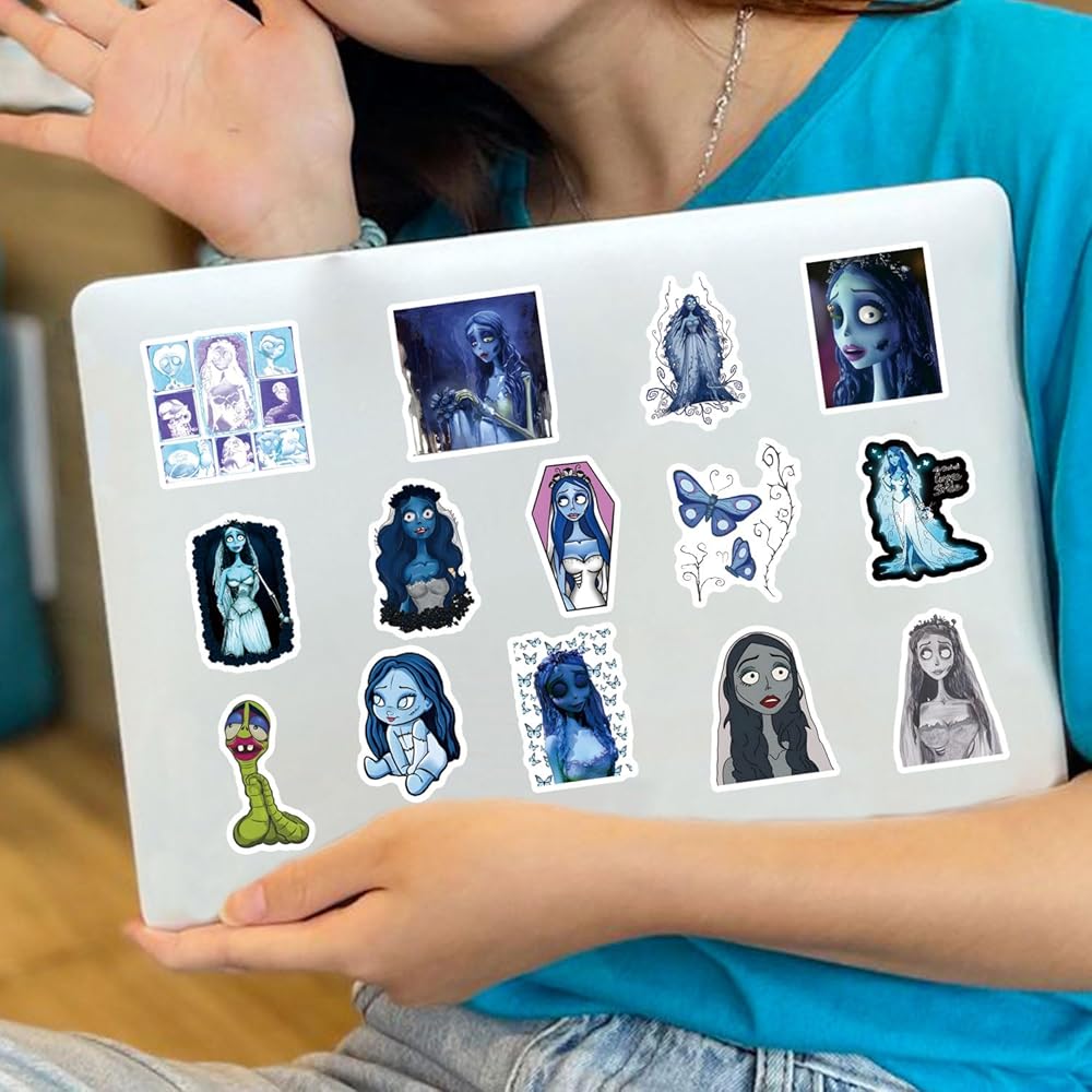 124Pcs Corpse Bride Stickers Pack,Aesthetics Cute Cartoon Movie Vinyl Waterproof Decals for Water Bottle, Laptop, Phone, Skateboard, Journaling for Kids Teens Girls Adults for Party Supply