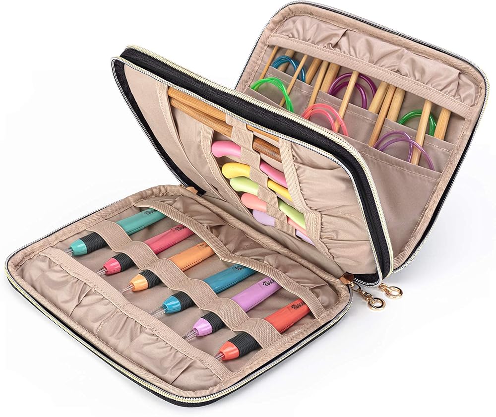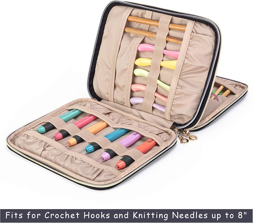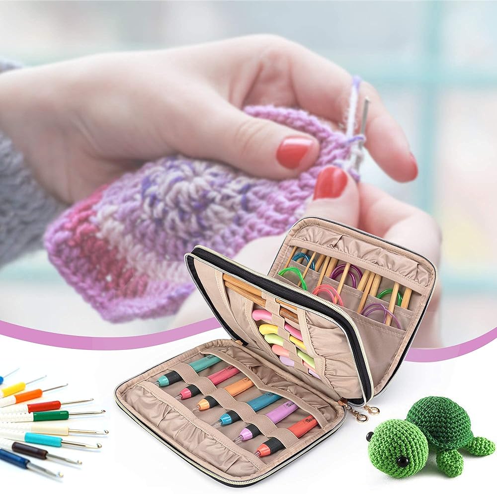 Teamoy Crochet Hook Case, Circular Knitting Needle Storage Bag, Travel Organizer Bag for Crochet Hook and Knitting Accessories