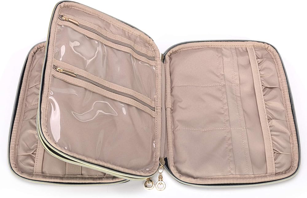 🎄SMART DESIGN: 2 transparent zipper pouch could hold your notions, like stitch marker, tape measure, scissors, etc. 6 pockets for circular knitting needles. Top flaps and bottom slots prevent different length of crochet hooks and knitting needles from falling out.