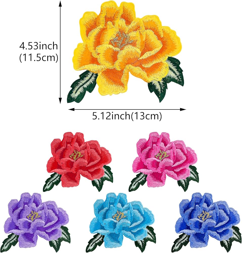 【Package Include】12 pcs rose flower embroidered appliques in 6 different colors. Each flower applique patch is approx. 5.12" x 4.53"(13 cm x 11.5 cm).