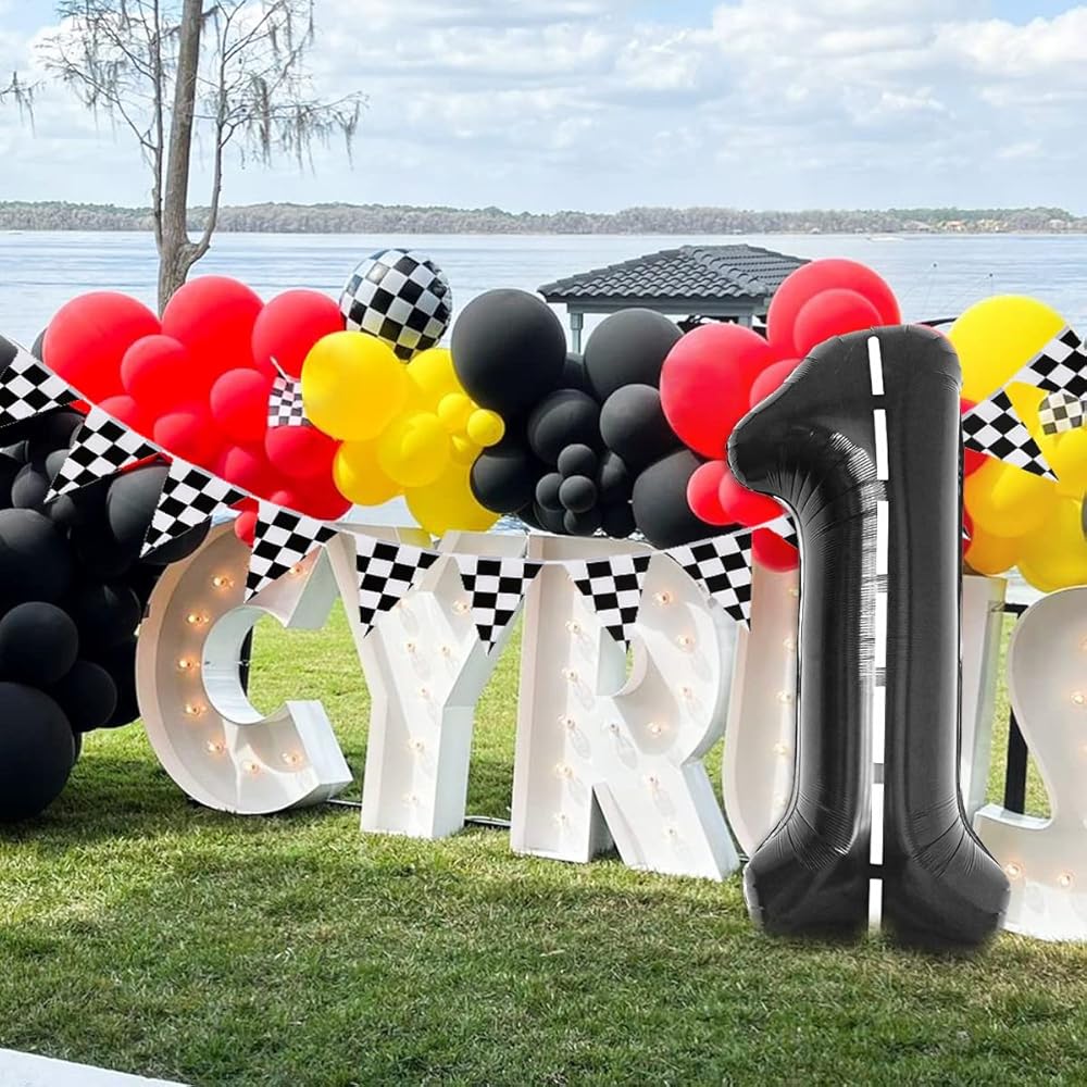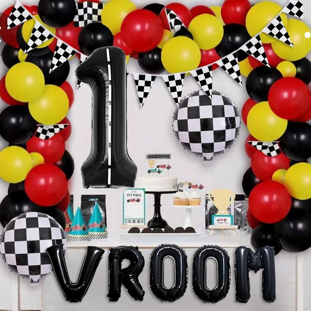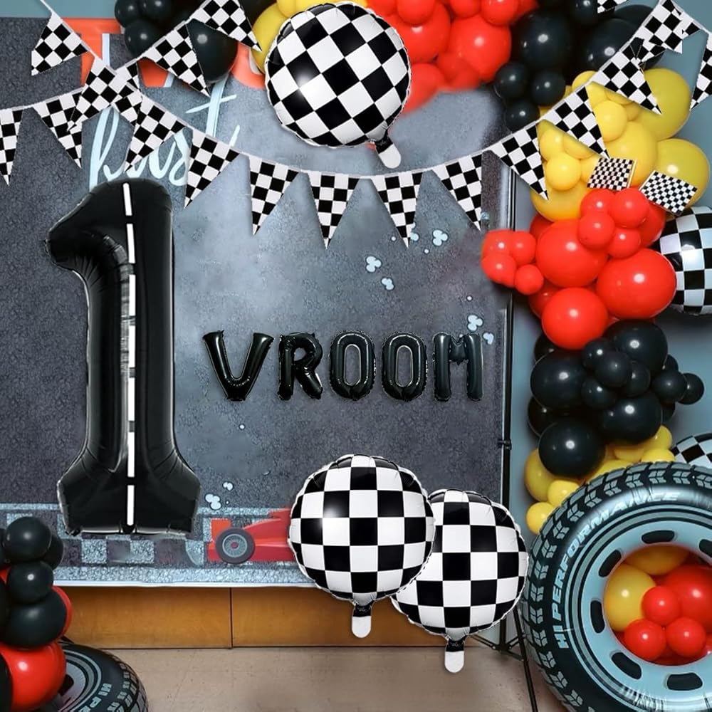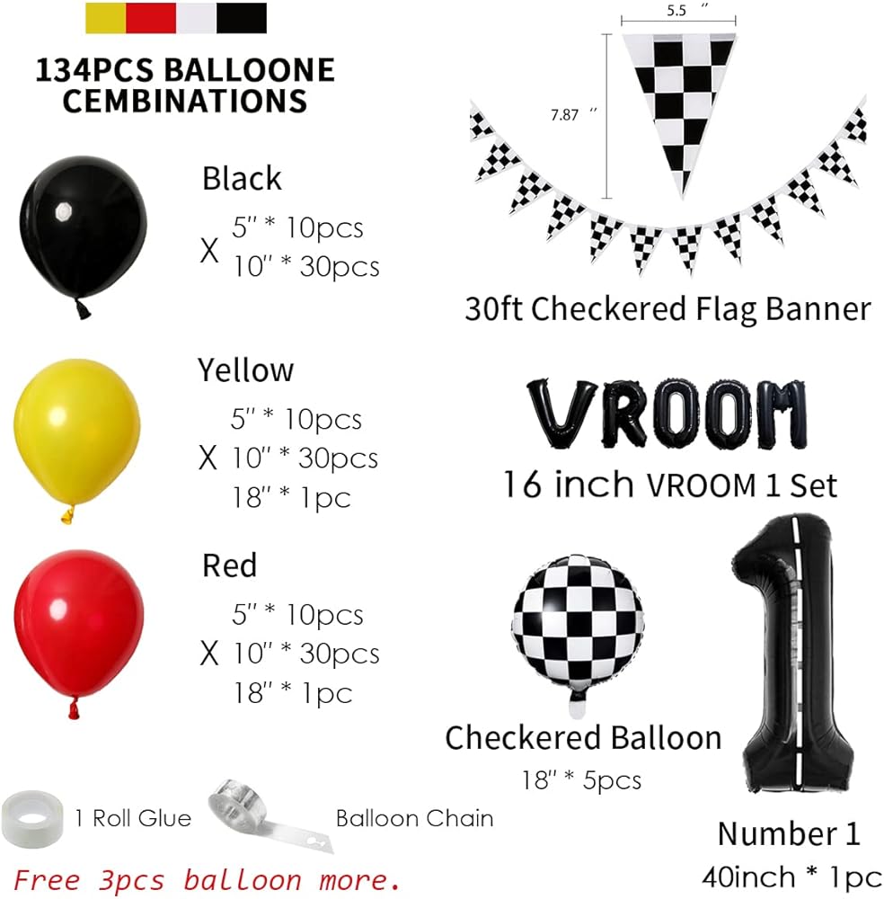 What you will get: you will receive 134 pieces balloon, including 122 pcs latex balloons, 5pcs 18inch checkered balloons,1pc 40inch number balloon,1 set 16inch VROOM Balloon ,1 set 30FT checkered pennant ,1 single chain and 1 dispensing roll, sufficient quantity to meet your daily use, and you don't have to worry about the shortage of quantity, which can meet your various needs