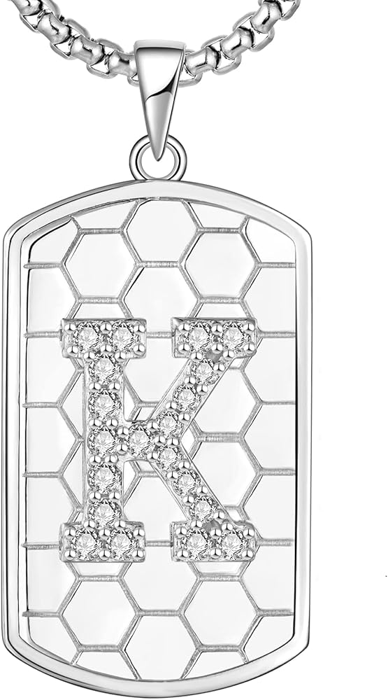 ❤️ K Letter Pendant Size - high:1.10''; Stainless Steel Box Chain 24inch; Set with AAAAA round cut cubic zirconia
