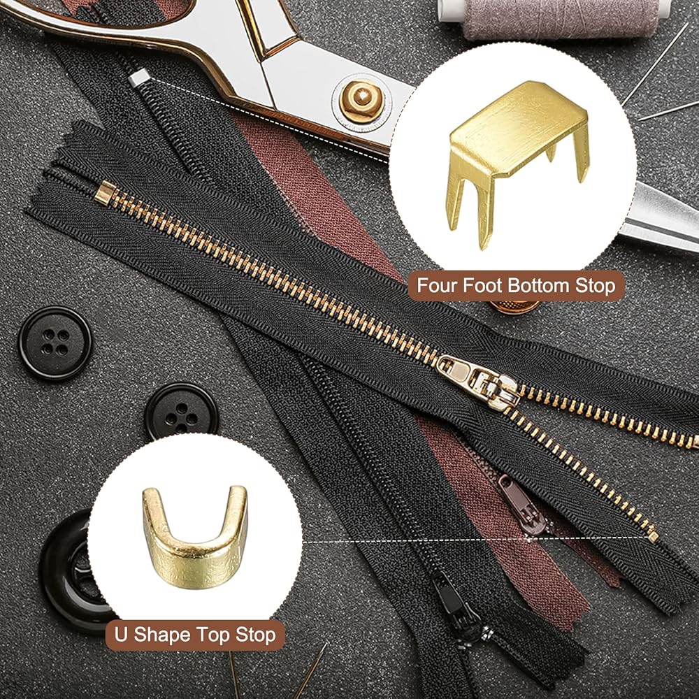 HOW TO USE - Use the correct type of new replacement to fix the zipper: Retainer boxes and insertion pins lock the bottom of the open-end zipper. H-shaped stops lock the bottom and U-shaped stops lock the top of the closed-end zipper. Four feet stops is to lock the top or bottom of the zipper. You can install it with some tools like a plier or glue.