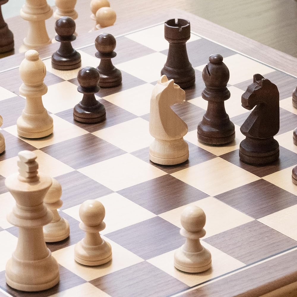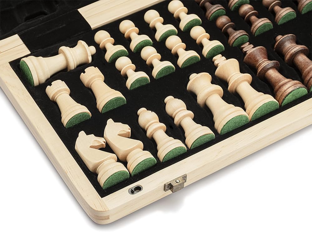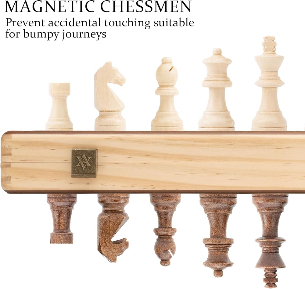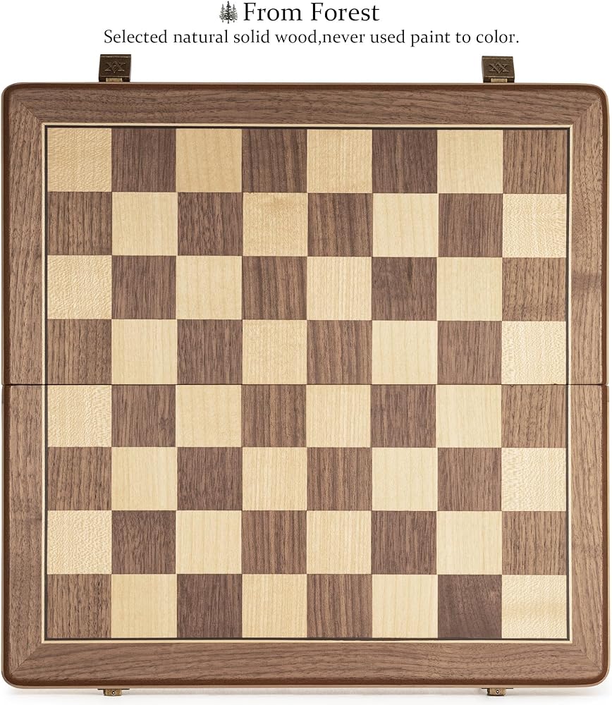 [Perfect Proportions] A&A is the only chess set on the market that meets the standard proportions of USCF and FIDE.Includes 24 checkers pieces. 15 inch board with 1.57 inch maple /walnut squares, come with Staunton pieces of 3 inch king height and 1.18 inch base diameter. (King height is twice the square, and base diameter is 75 percent of the square).