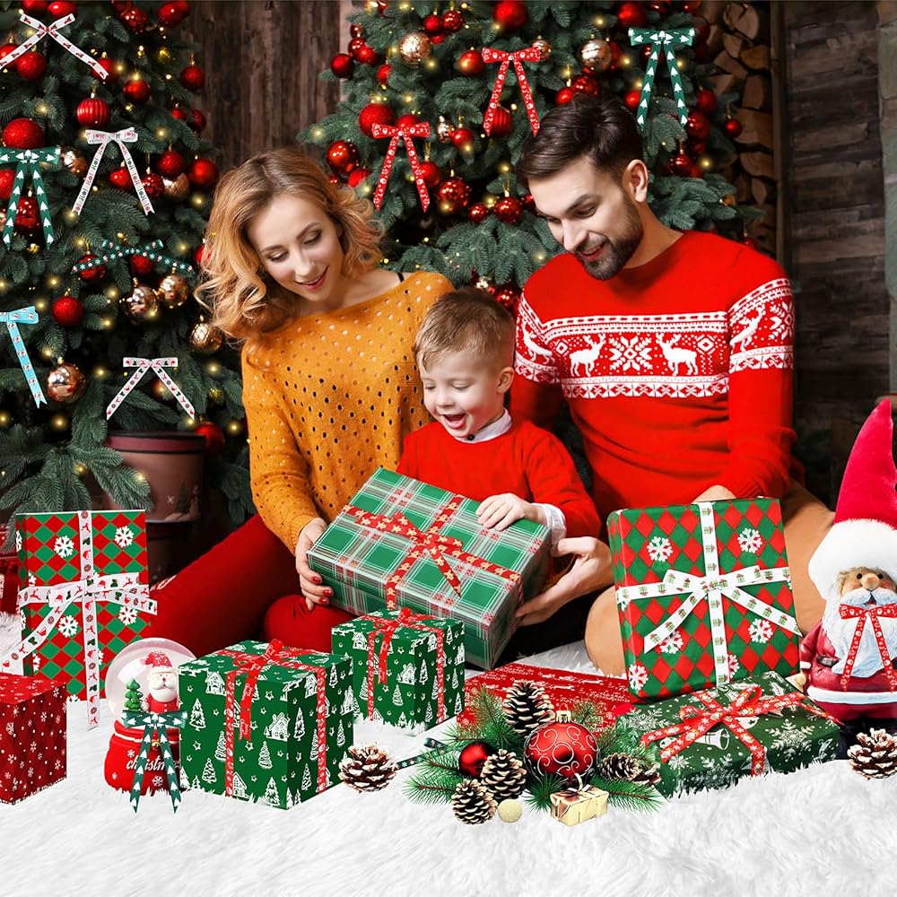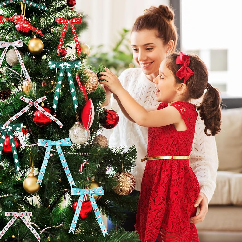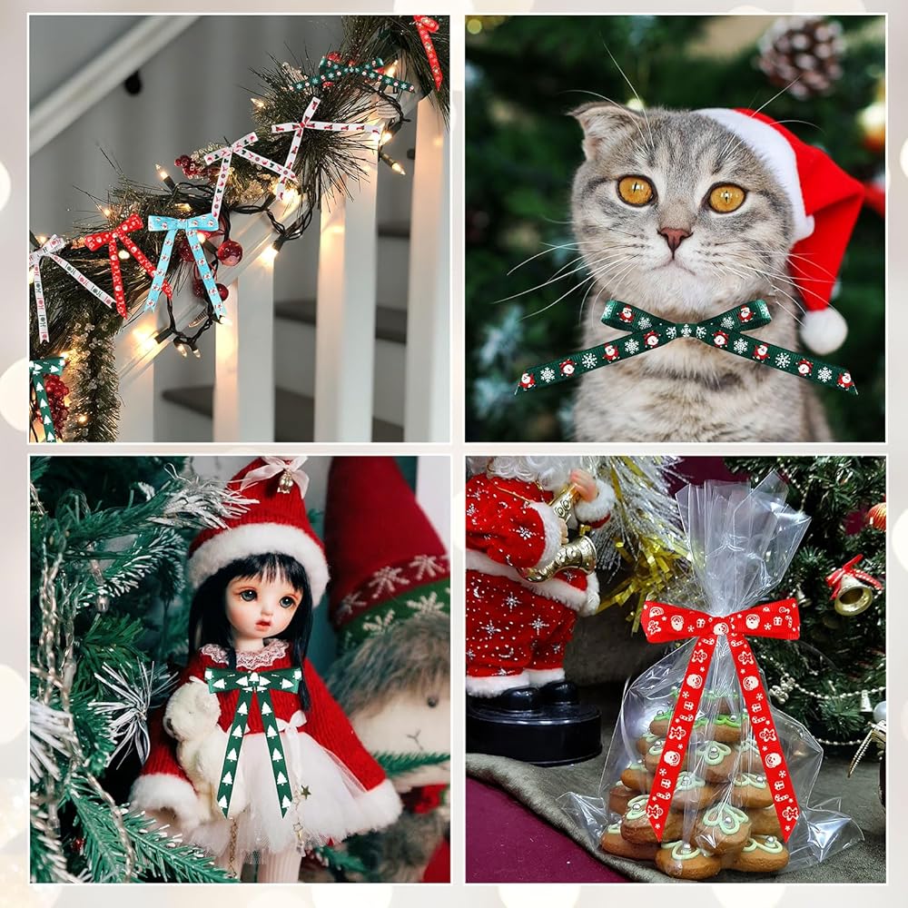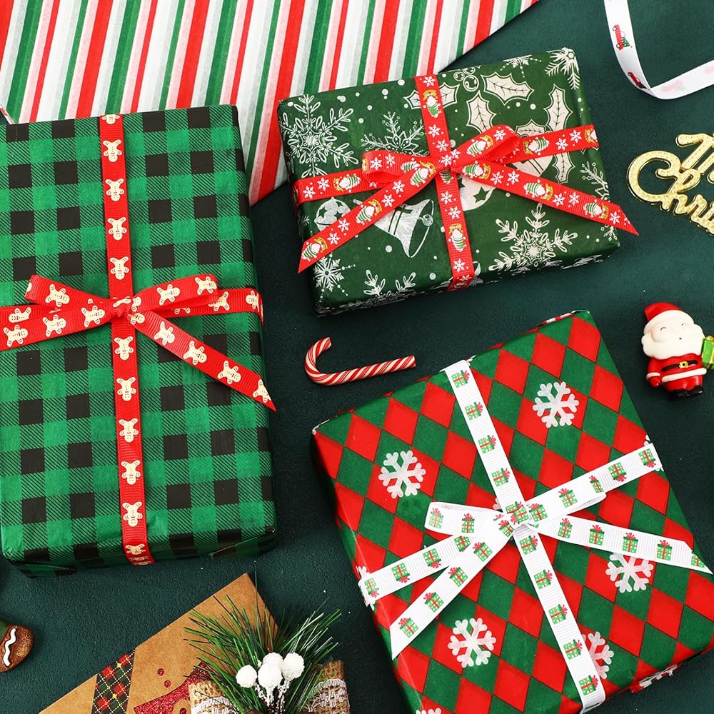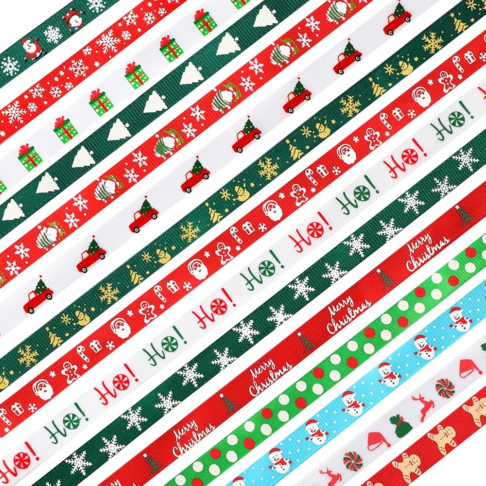 SANNIX Christmas Ribbon, 15 Yards 3/8 Inch Christmas Grosgrain Ribbons for Gift Wrapping, Christmas Festival Pattern Printed Ribbon for DIY Crafts Xmas Holiday Decorations