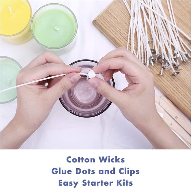 VARIOUS SIZE CANDLE WICKS: This candle wick kit offers a variety of sizes to fit different types of candles. The 4" wicks are ideal for small votives and tea lights, the 6" wicks are perfect for medium-sized candles, and the 8" wicks are great for larger candles.