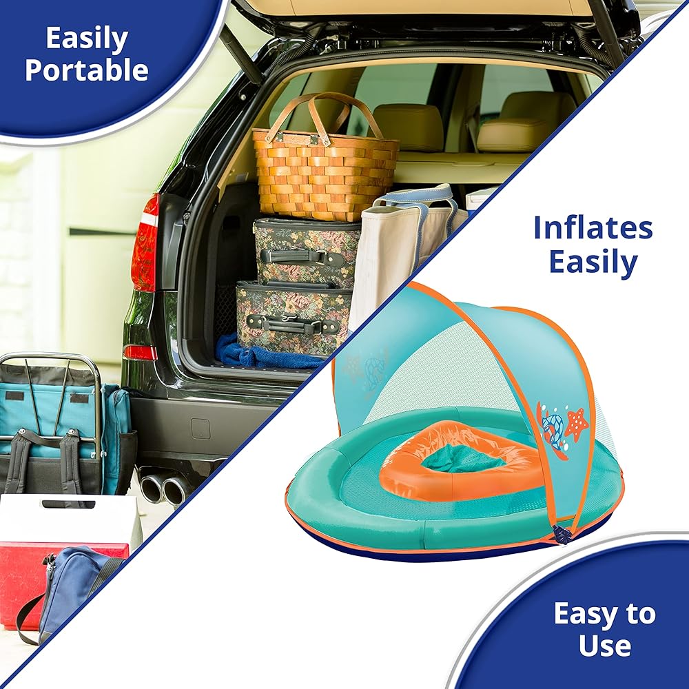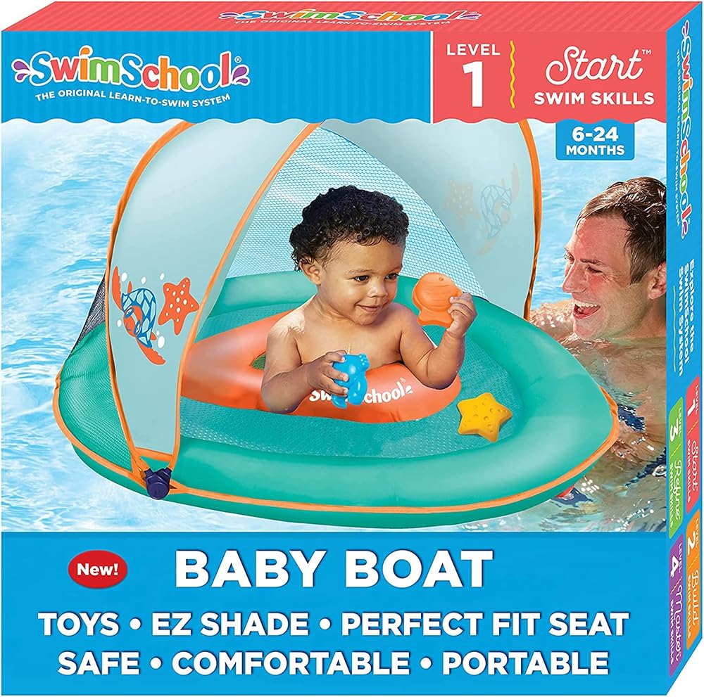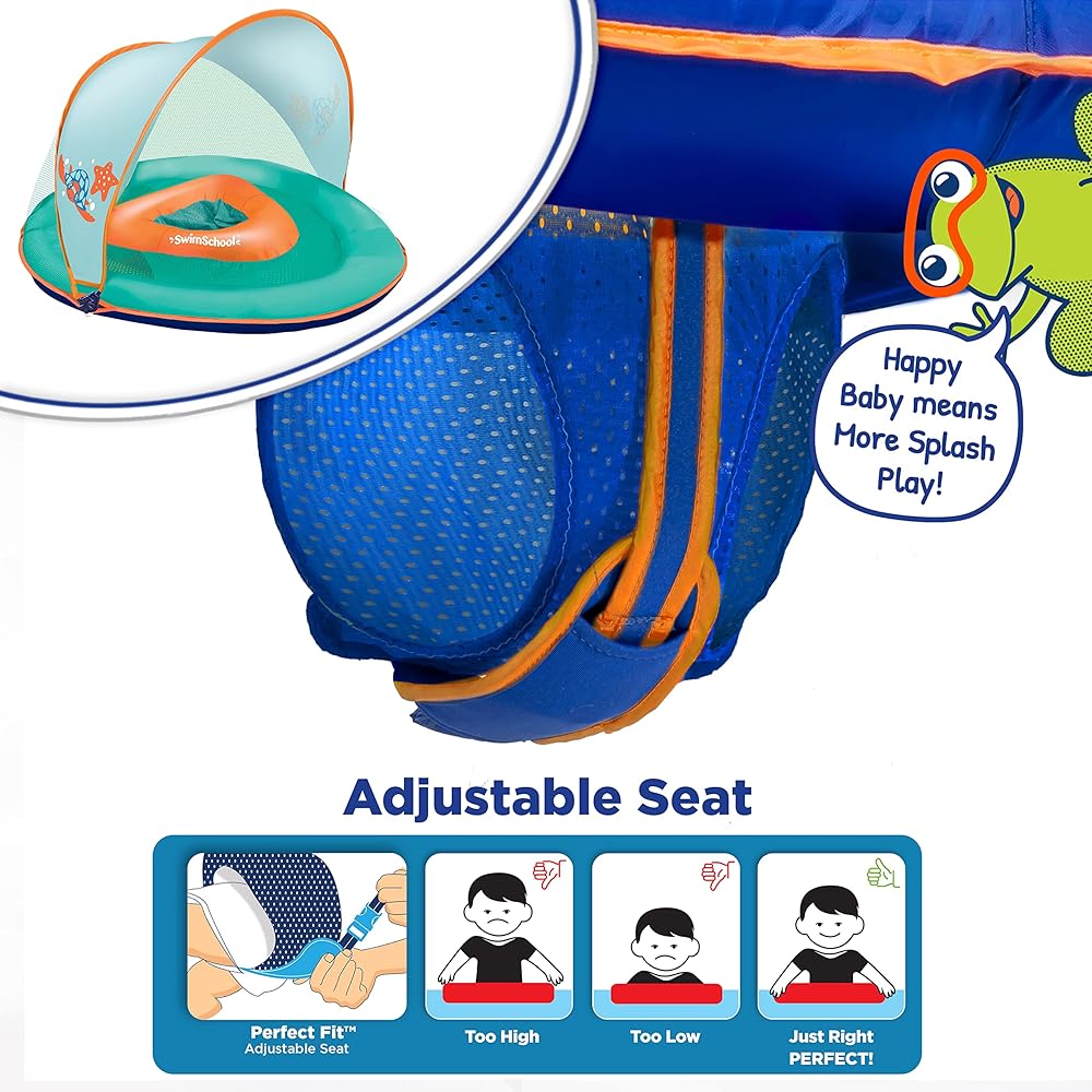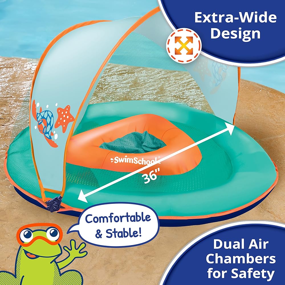 SwimSchool Infant Baby Pool Float with Splash & Play Activity Toys, Adjustable Sun Canopy