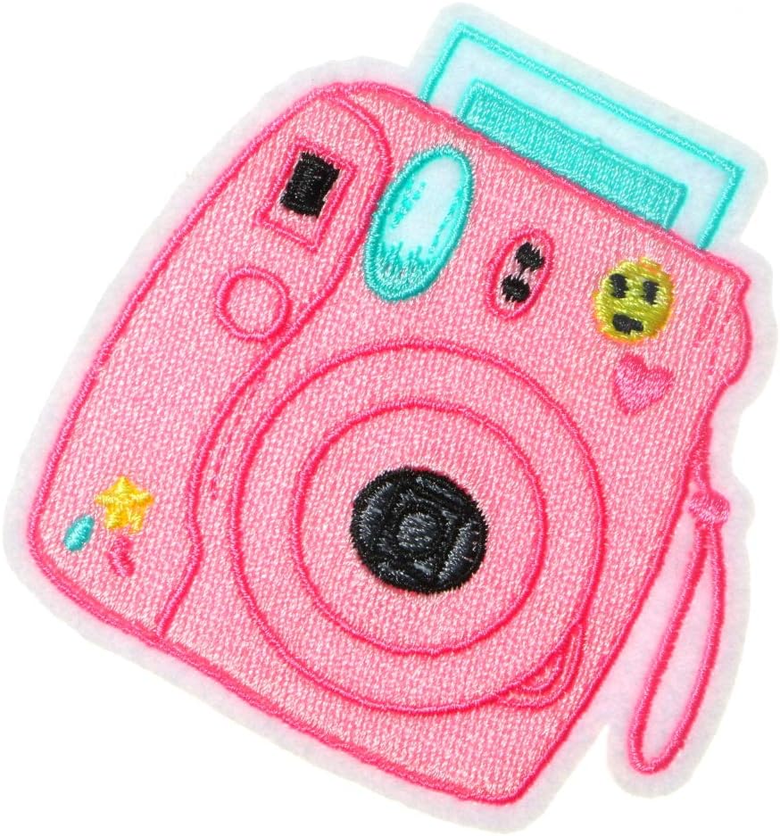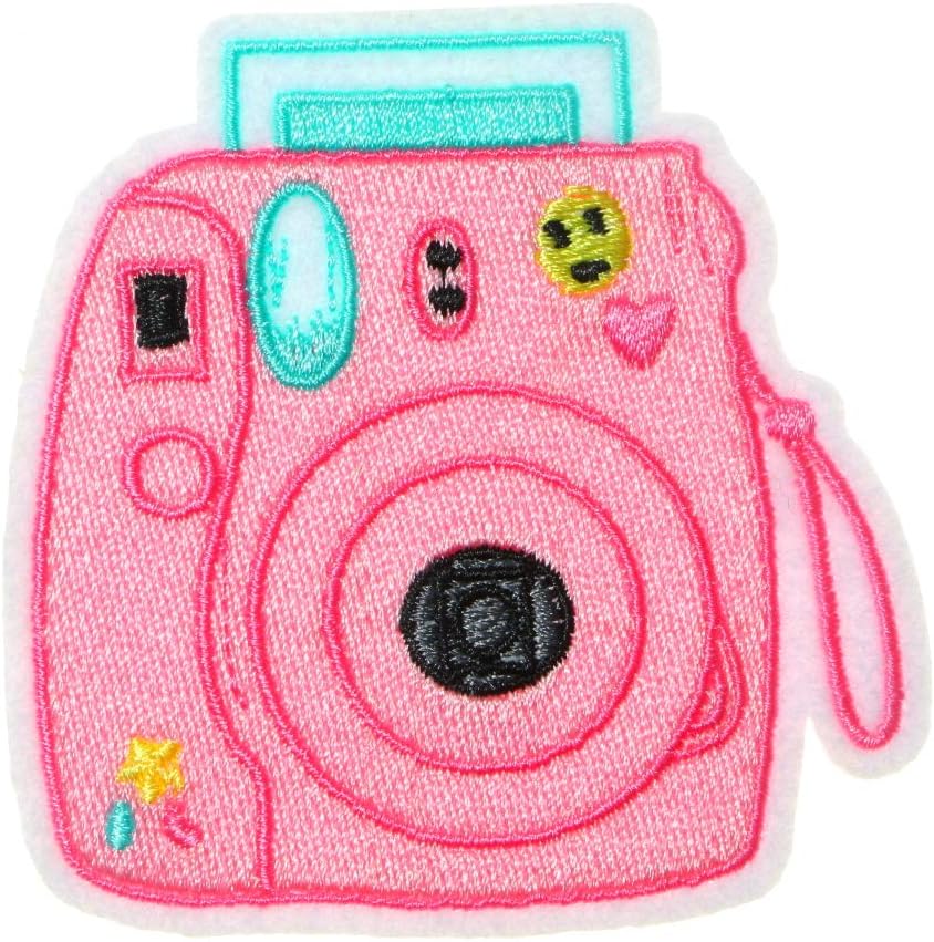 JPT - Pink Camera Polaroid Photo Picture Album Image Gallery Vintage Cute Cartoon Embroidered Applique Iron/Sew on Patches Badge Cute Logo Patch on Vest Jacket Shirt Hat Jean Clothing Bag