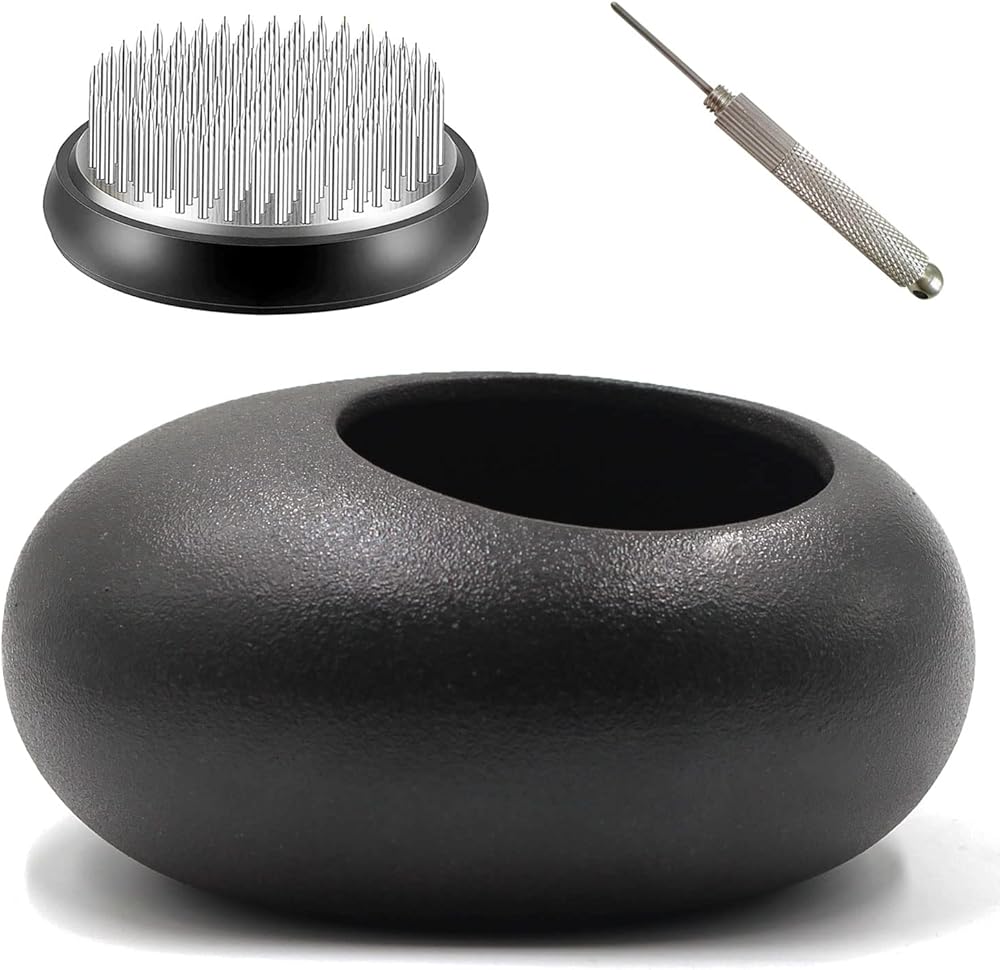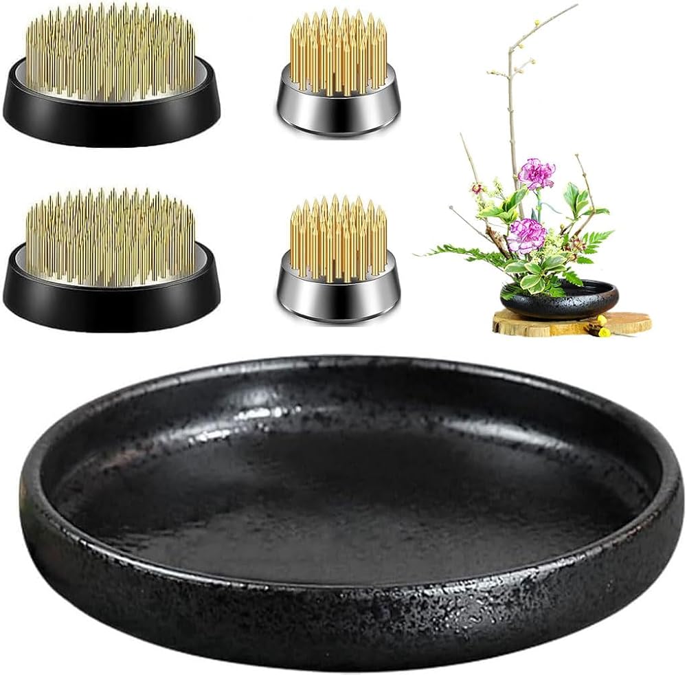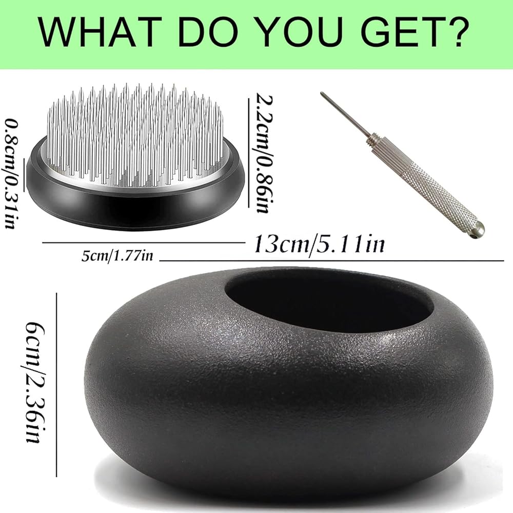 Flower Arrangement Sets of 5. Features: Size and package: This floral arranging kit contains 4 pcs flower frogs, 1 pc ceramic flower pot(small). Rich combination: This kit contains various kinds of tools you need for flower arranging. You can complete the whole flower arranging process easily with these tools no need to prepare extra cleaning tools or stems. To keep flower fresh: With the metal flower holder and ceramic flower pot, you can keep the flower stems in water and add water randomly when it becomes less, then the flower can keep longer time than that by using foam. Great for ikebana: These tools are used to straighten kenzan needles and remove foreign objects between the needles, which make your flower frogs reusable and protect your hands from being scratched. Ideal gifts: Great gift for your family or friends who love floral arrangements, convenient for Ikebana art decorating your house and office as well. Customer Service: We provide 48-days money-back and 24 months warranty. Do not hesitate to contact us when you have any questions. Please feel free to contact us if there is any quality problem.
