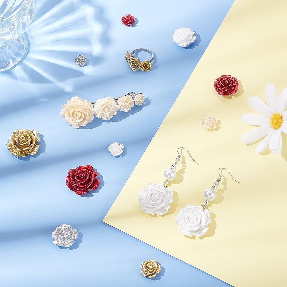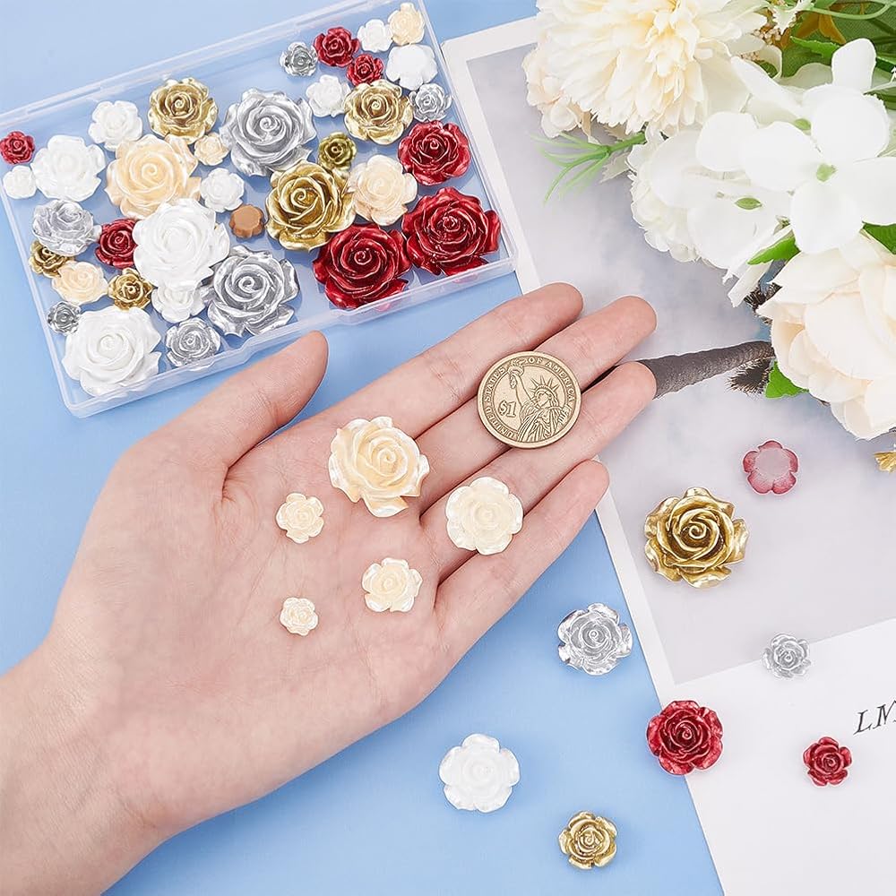 Rose Cabochons: These opaque flower beads has flat straight back, makes it easy to glue on the smooth surfaces. You can use the charming flowers to embellish the greeting cards and show the 3D effect, which will be delicate and unique.