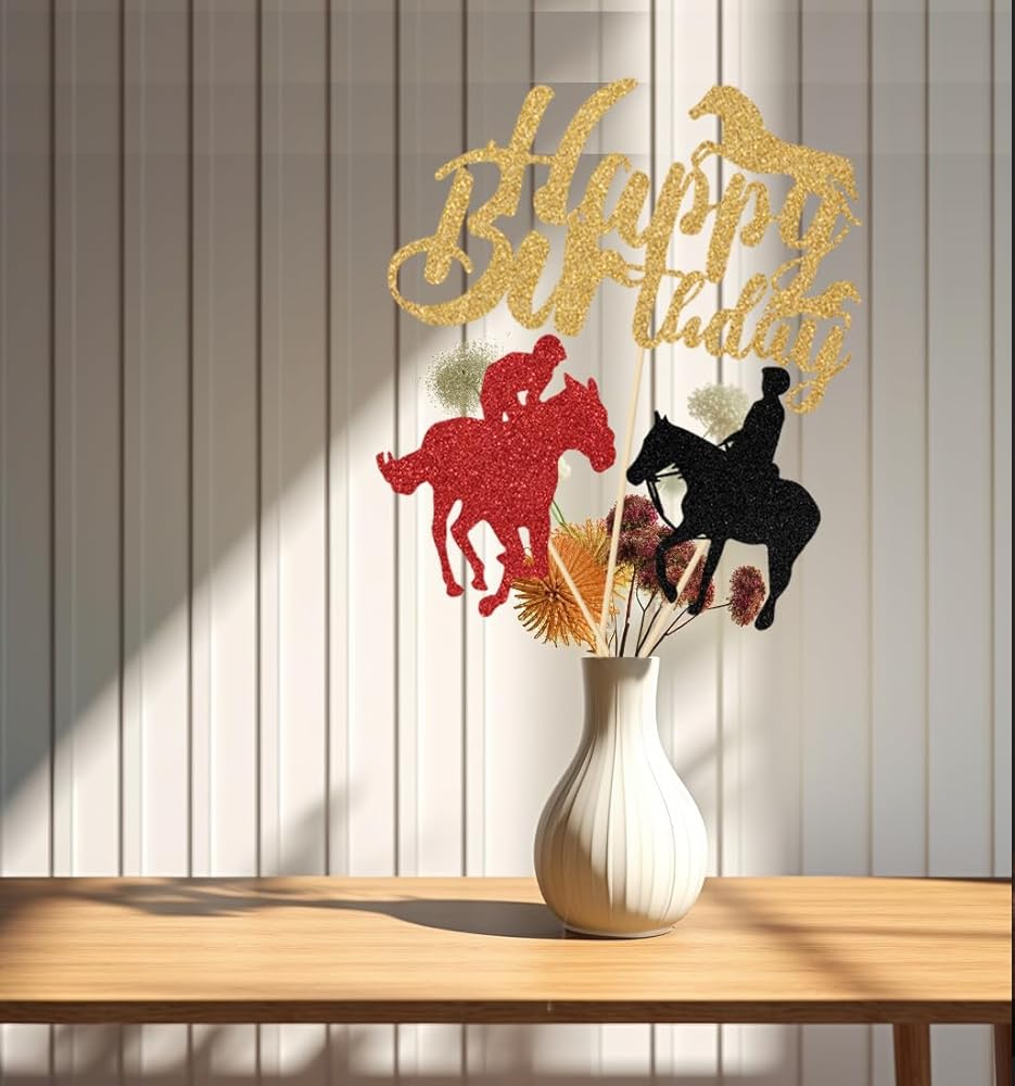 The Horse Racing Centerpieces Sticks are very glitter, you can use them be used as part of a centerpiece, floral, table toppers, photo booth props or cake decorations, add something sweet atmosphere.