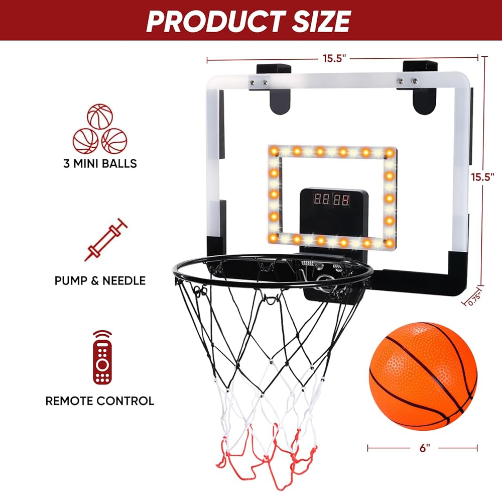 MejorChoy Indoor Mini Basketball Hoop Set for Kids for Door Wall Room with 3 Balls Electronic Scoreboard
