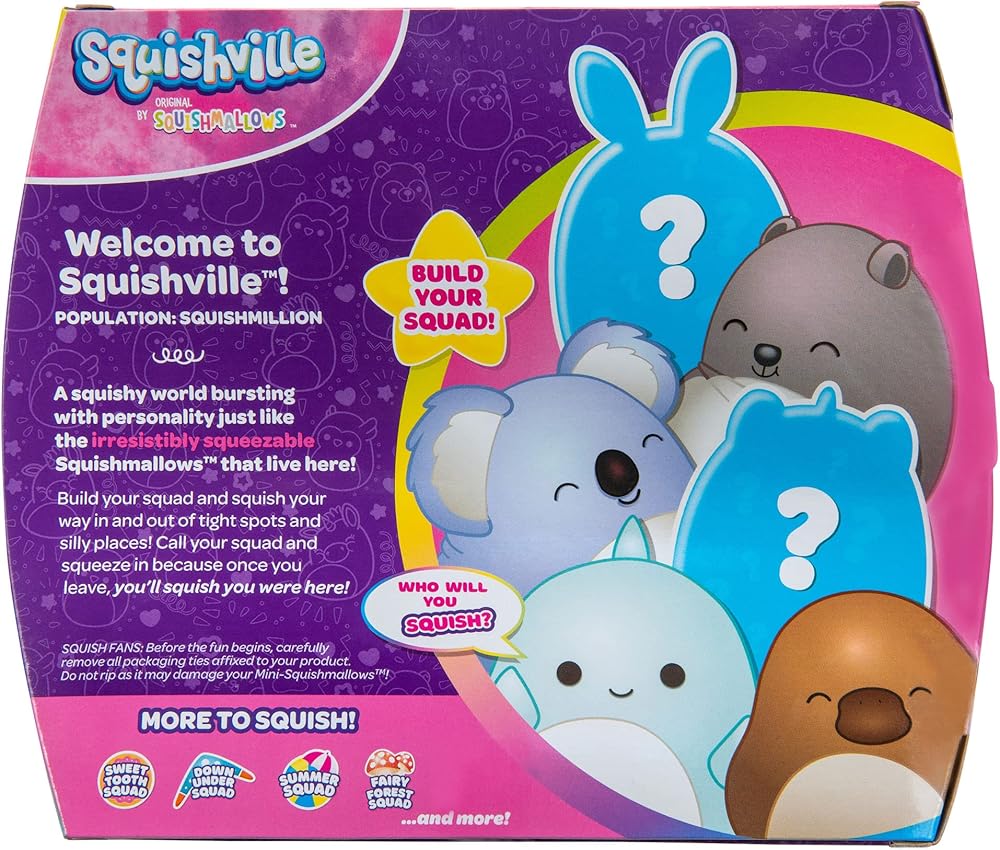 Embrace The Weensy Wonders Of The Down Under Squad! Featuring Six 2” Squishmallows Based On Iconic Aussie Animals, This Squad Will Take You On A Journey To The Outback. Explore The Open Bush With Wesley The Wombat, Kayla The Koala, Keely The Kangaroo, Ham The Crocodile, Santino The Platypus, And Sharon The Shark. And The Best Part Is, When You'Re Ready To Return, You Can Store ‘Em In Your Backpack And Bring ‘Em All Home! Collect This Set And All Four Styles Of These Squishville 6 Packs.