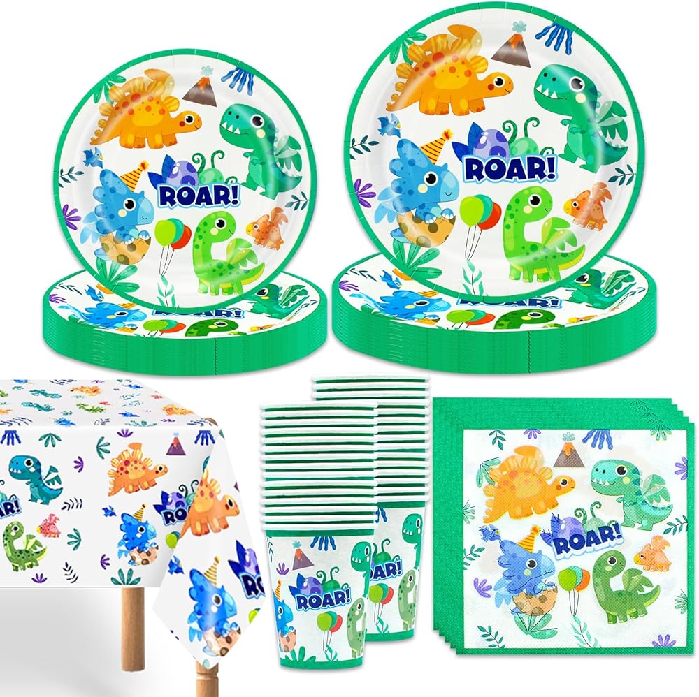 【Lightweight and Durable】- Made from high-quality materials, these dinosaur party supplies are lightweight yet durable. They are designed to withstand the rigors of a children's party and can be reused for future celebrations. The plates and cups are sturdy enough to hold food and drinks without bending or breaking.