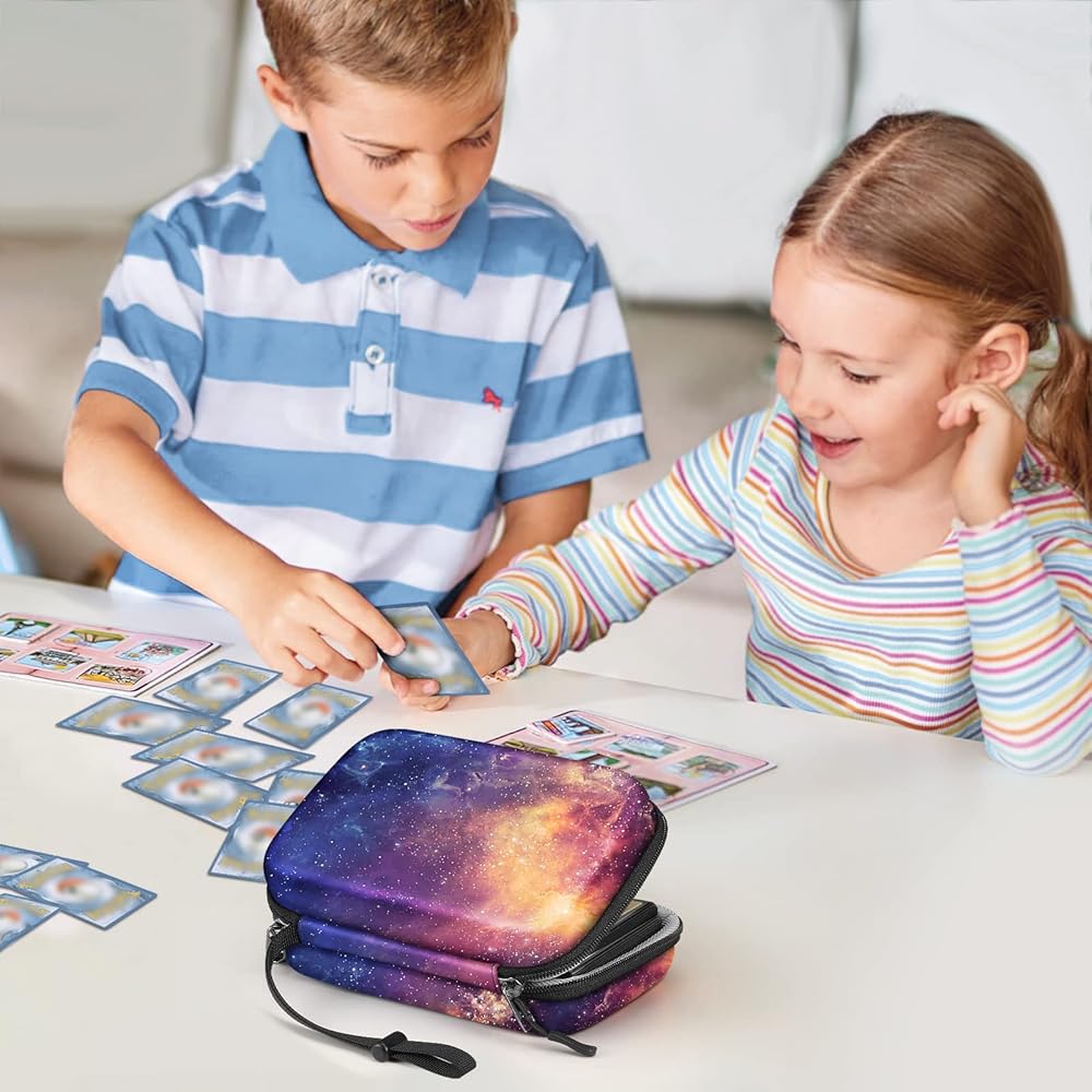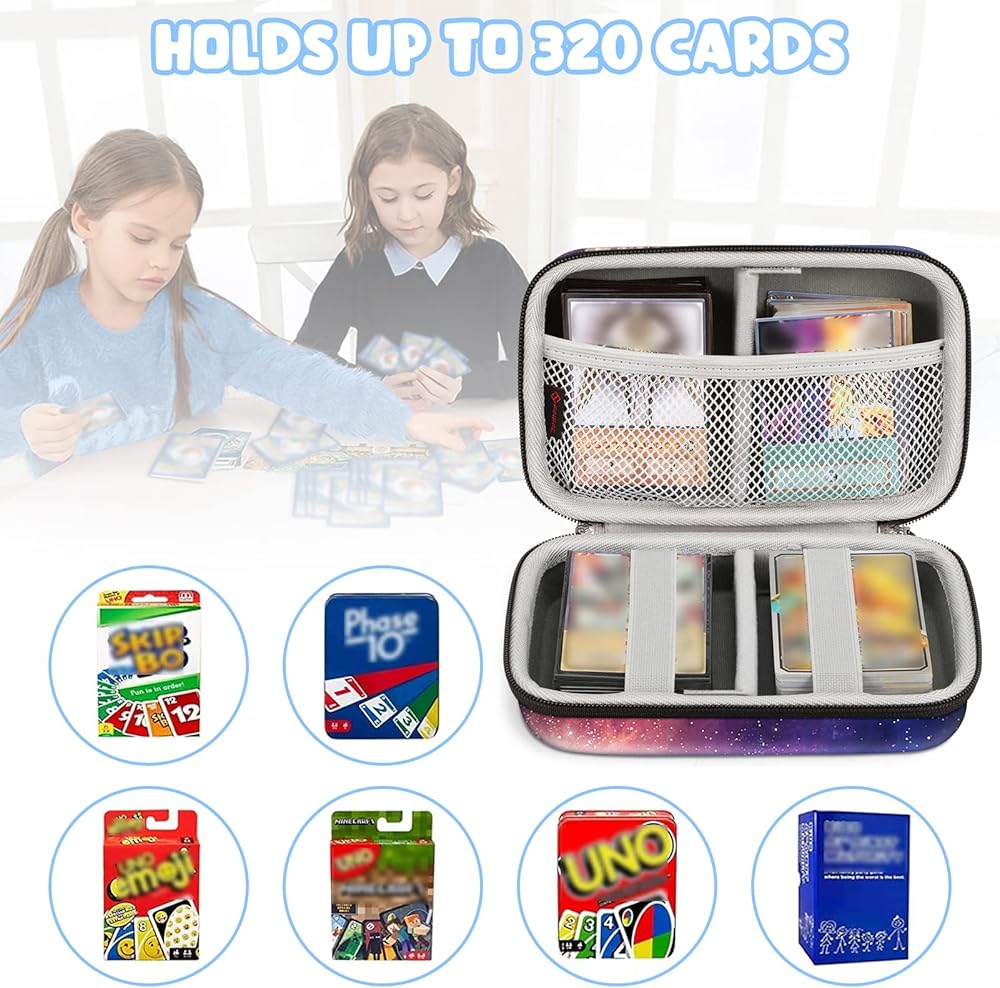 CaseBot Cards Case Compatible with PM TCG Cards, Hard Shell Shockproof Game Card Storage Holder Fits Up to 320 Cards with 2 Removable Dividers and Hand Strap, Galaxy