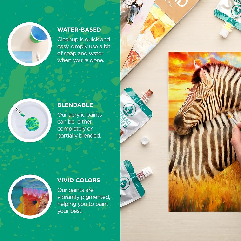 Easy Use and Little Mess: Our acrylic paint contains vibrant paints in easy squeeze tubes to ensure that you can effortlessly create your next masterpiece
