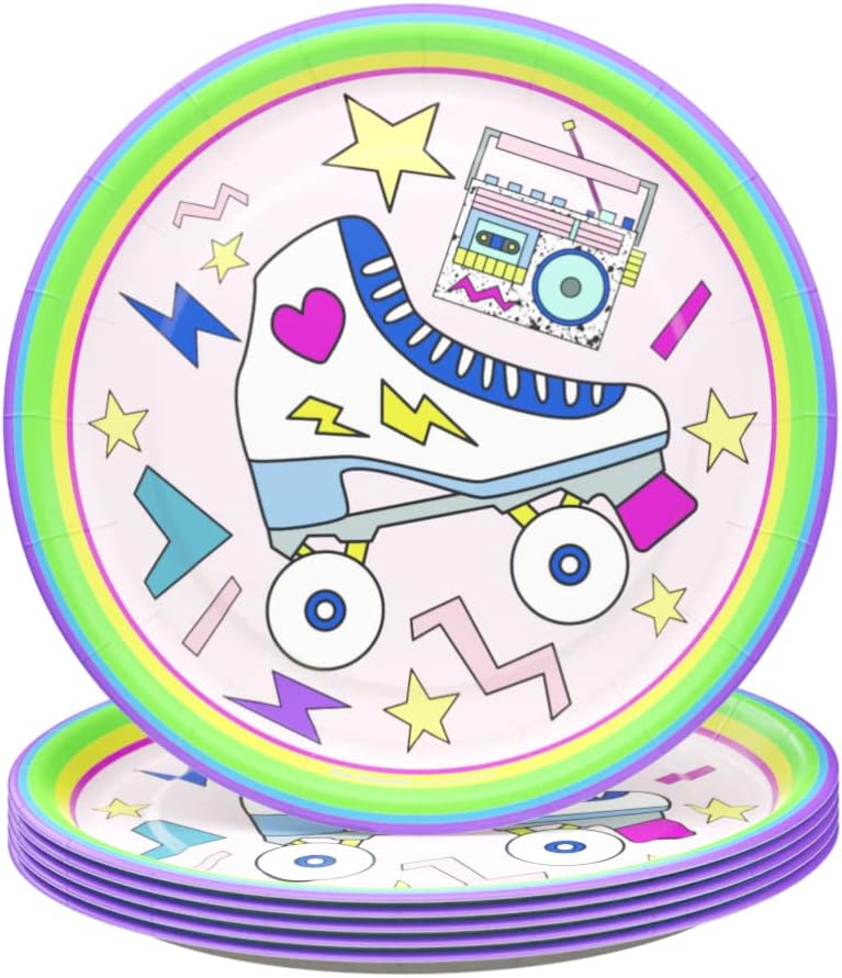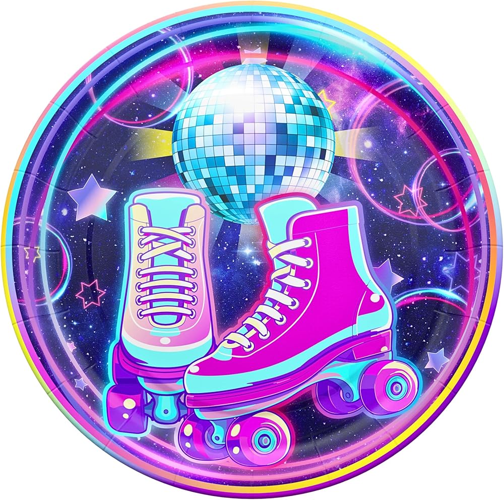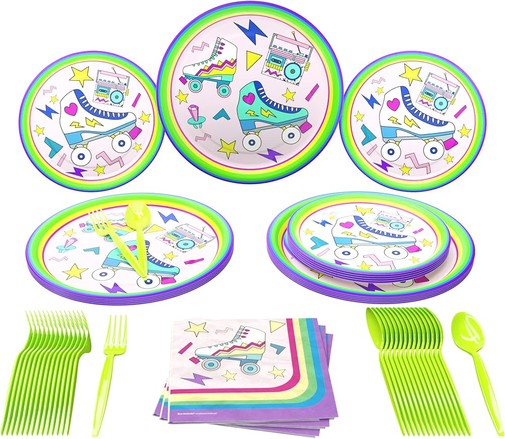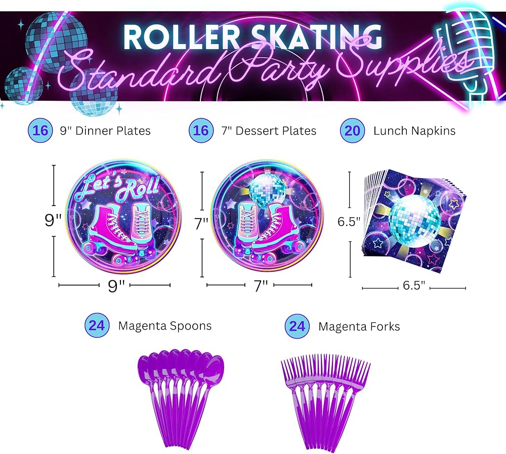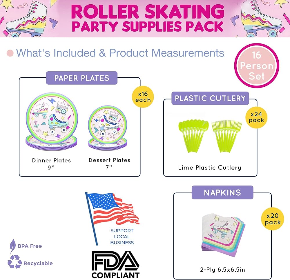Roller Skating Party Supplies Packs (100 Pieces for 16 Guests) - Roller Skating Party, 90s Party Supplies, Roller Skate Plates And Napkins, Skate Party Decorations For Girl, Blue Orchards
