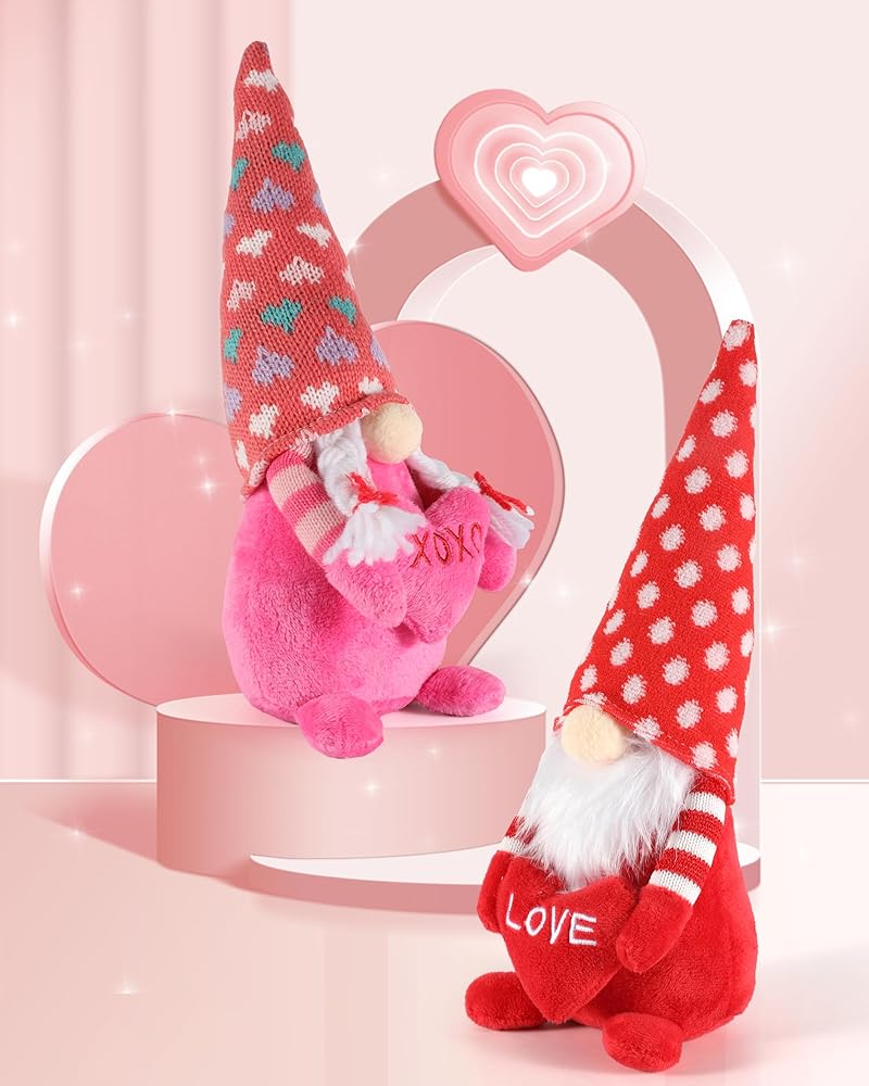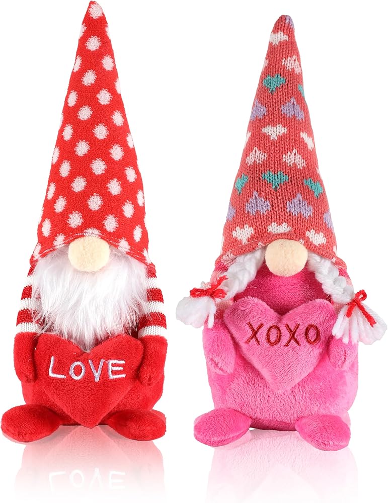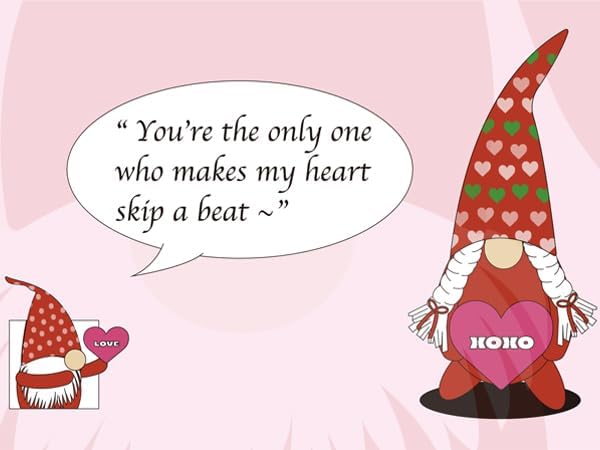 Show your love and affection for your sweetheart with these Valentine's Day gnome plush dolls. These dolls are cute and cuddly, and will make your Valentine's Day more special and romantic. You can hug them, snuggle with them, or display them on your bed, sofa, or shelf. These dolls are perfect for decorating your home, office, or garden for Valentine's Day or any other day. They will add some charm and sweetness to your space, and create a cozy and lovely atmosphere. This set includes two dolls, one red with white polka dots and the other pink with red hearts. Both dolls have white beards and pointed hats. The red doll holds a sign that reads “LOVE” and the pink doll holds a sign that reads “XOXO”. These dolls are made of soft and high-quality plush material, and measure 9.8 inches tall. They are easy to clean and maintain, and will last for a long time. These dolls are a great gift idea for your sweetheart, whether it's your girlfriend, boyfriend, wife, husband, or crush. They will make them smile and feel loved and appreciated. They are suitable for any age, and will bring joy and happiness to anyone who receives them. Order yours today and surprise your sweetheart with these adorable Valentine's Day gnome plush dolls.