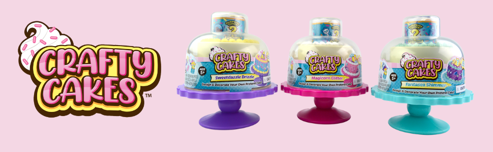 Whip up a beautiful mini masterpiece with Crafty Cakes! Take the fun of cake decorating without any of the baking difficulties with these decorative pretend cakes! Open up and see which surprise topper is inside, then design and decorate your own mini cake. Perfect for design fun with friends or as a gift!