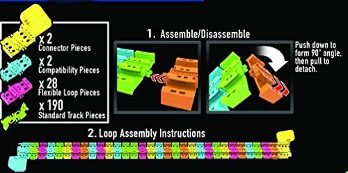 - Includes 9.5 Feet of Standard Flexible Track and 3.5 Feet of Loop Track for a total of 13 feet of Neon Glow Track and One Light-Up Race Series Car