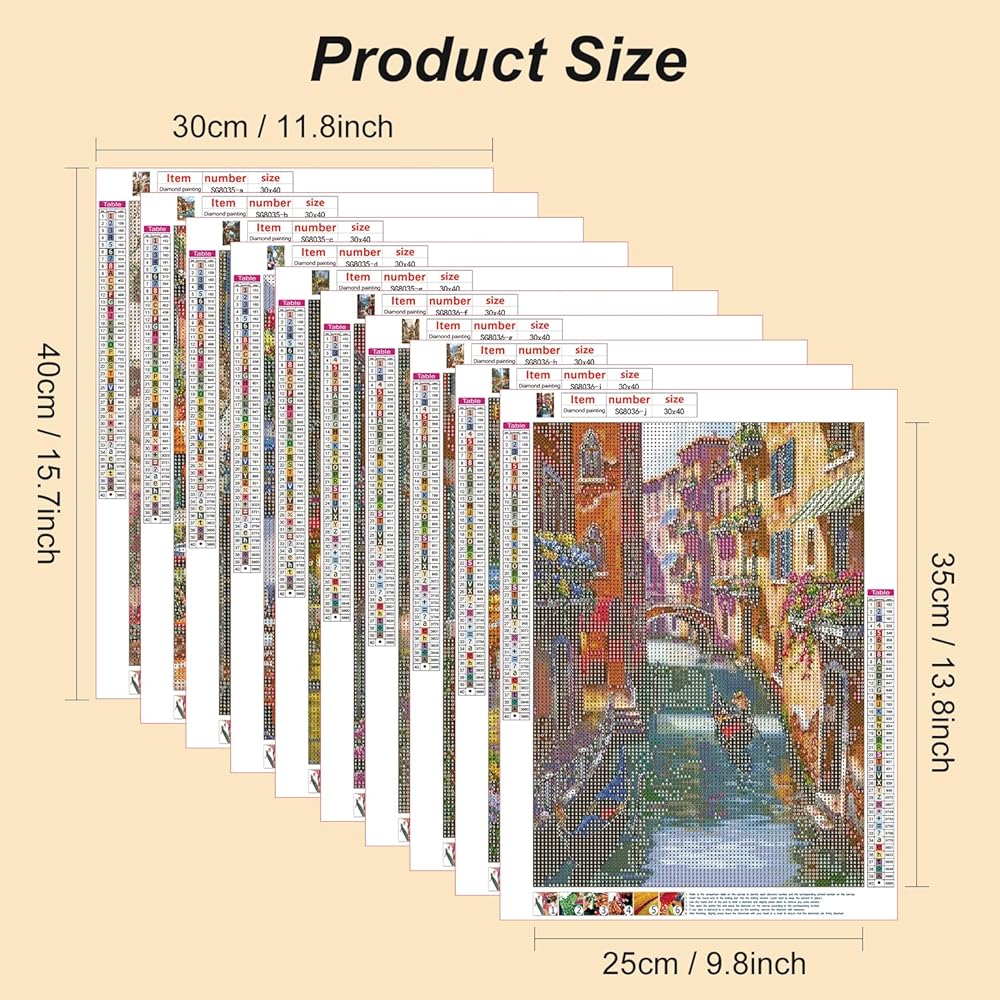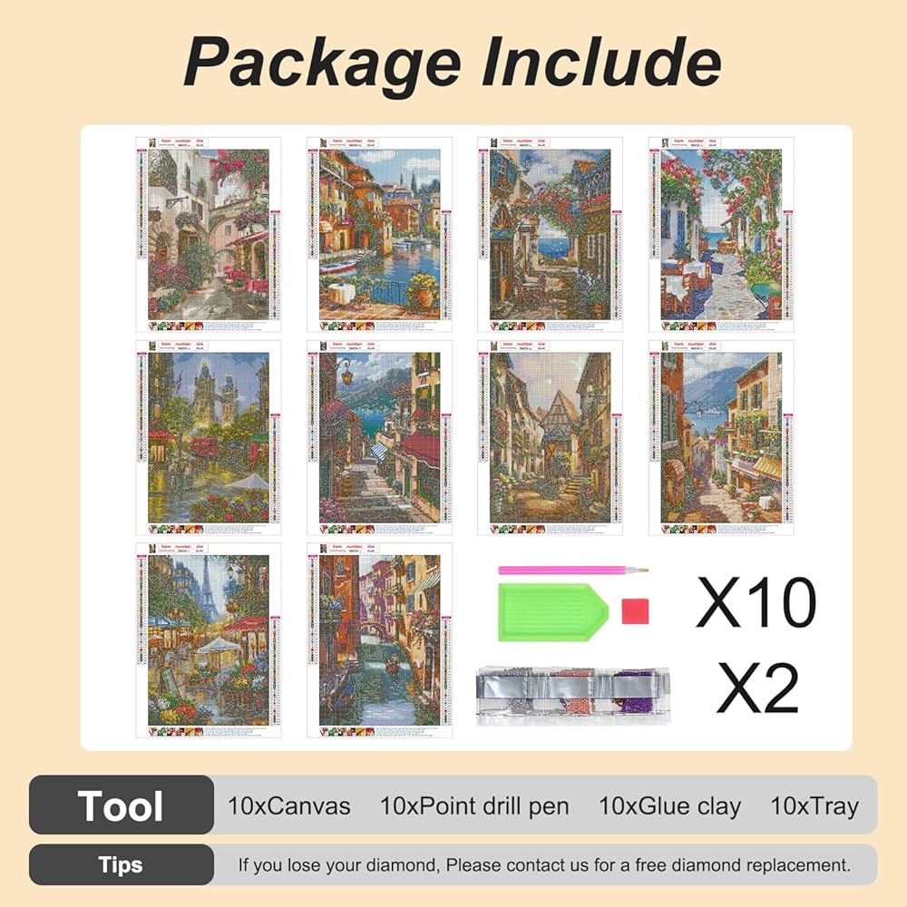 Stalente Diamond Painting Kits for Adults, 10 Pack 5D Diamond Art Kits for Beginners Round Full Drill Diamond Painting for Home Wall Decoration Gift 12×16inch, Street Landscape