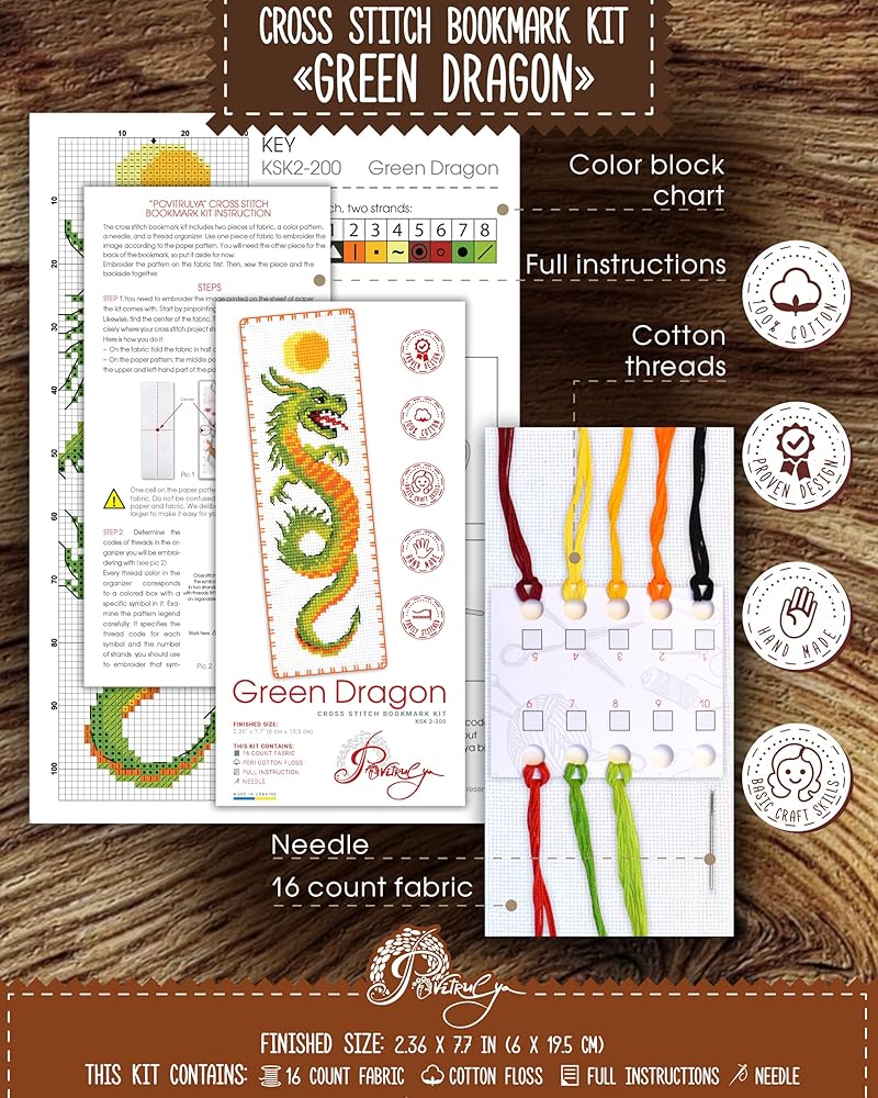 - Counted cross stitch bookmark kit 🐟 "Koi Carp" 🌊 includes everything to stitch finished embroidery: pattern, guide, 16 count Aida fabric, threads, needle;