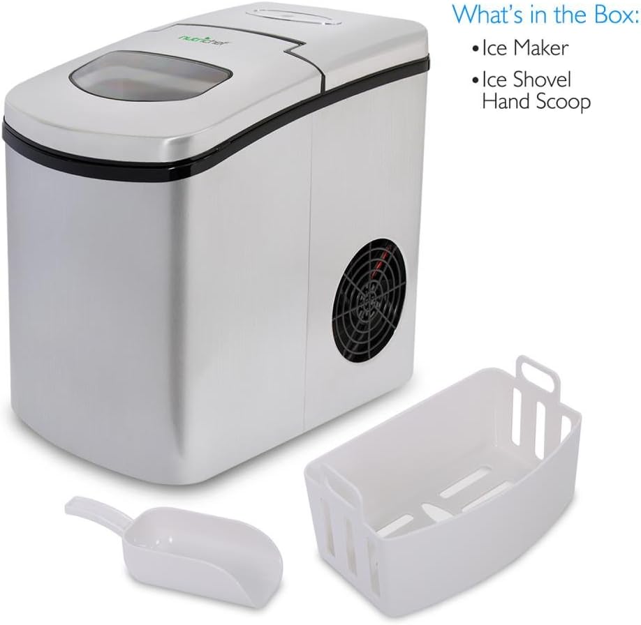 NutriChef Upgraded Digital Portable Ice Maker Machine - Heavy Duty Electric Stainless Steel Stain Resistant Countertop and Built in Freezer Over Sized Bucket w/ LED Light Easy Touch Button