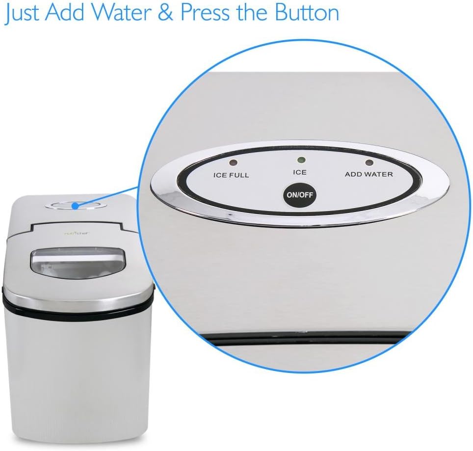 LARGE STORAGE CAPACITY: NutriChef unique ice maker produces ice cubes by a built-in water reservoir that holds up to 1.7 liters of water. Quench the thirst and drink iced and cold water.