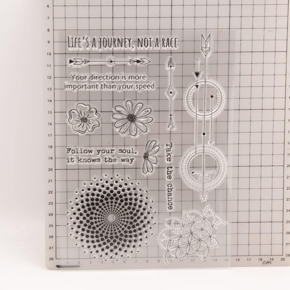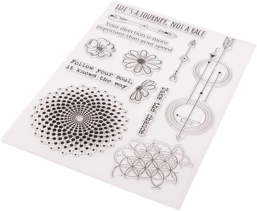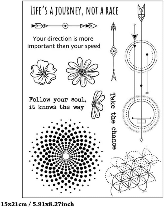 Arrow Mandala Flower Pattern Clear Stamps Daisy Floral Greeting Words Transparent Seal Stamps for Holiday Card Making Decoration and DIY Scrapbooking Album DIY Crafts