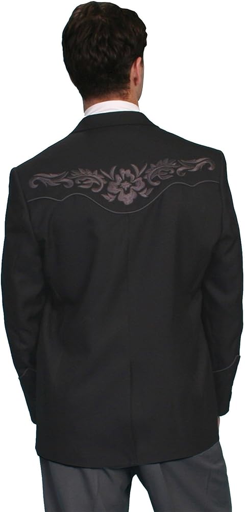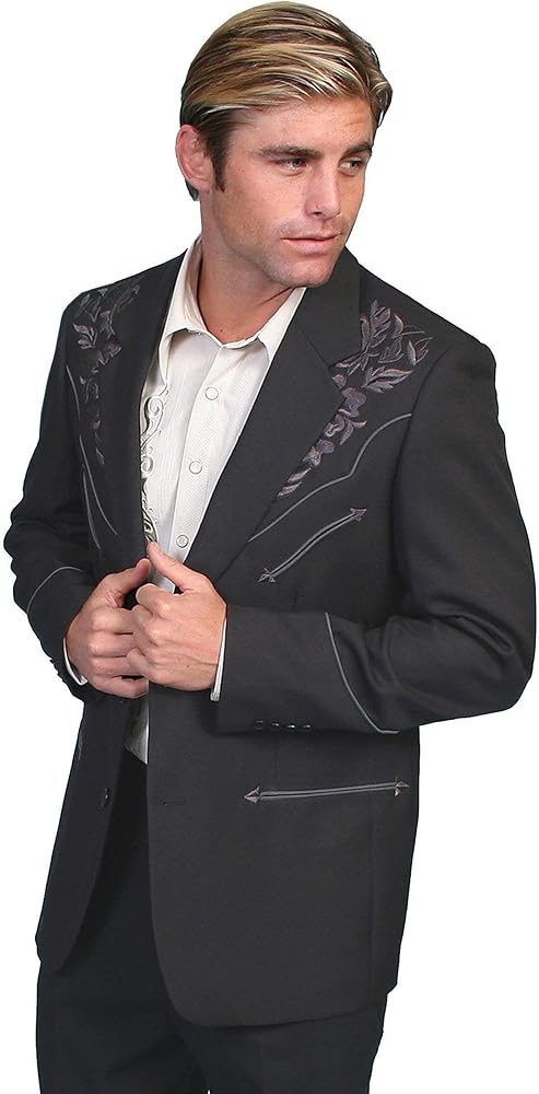 Scully knows how to dress a cowboy for more formal occasions. This Men's Scully Apparel Jacket exudes handsome country style. Dress jacket features two retro western style chest pockets complete with piping and arrow design and two welt pockets. Two handy inside chest pockets. Two-button front placket. Convenient back vent leaves room to move. Men's jacket is made of 100% polyester. Imported.