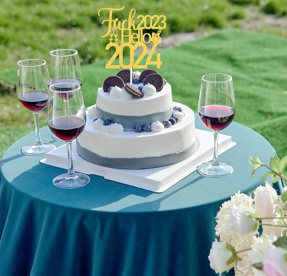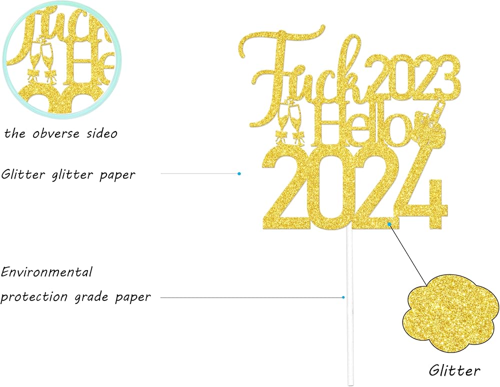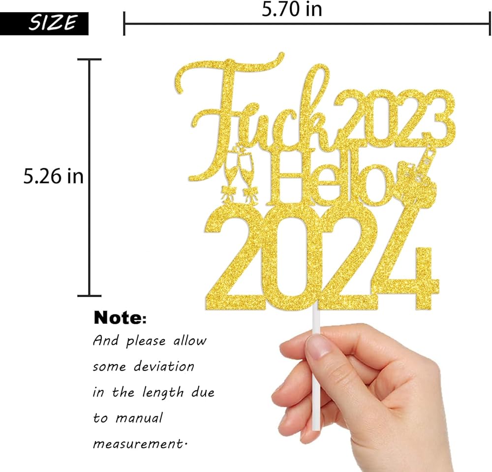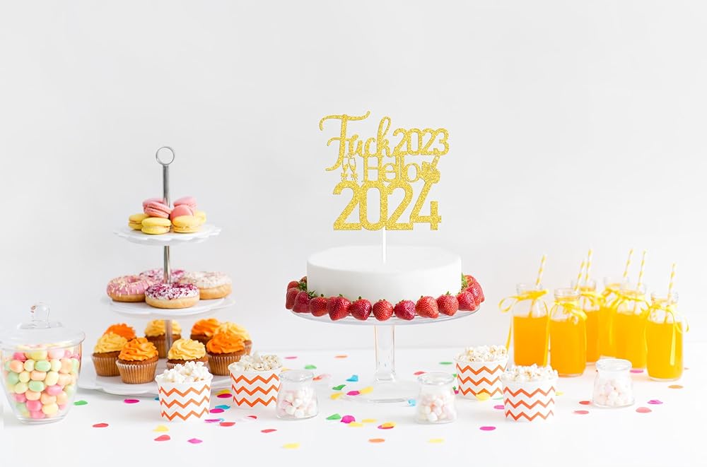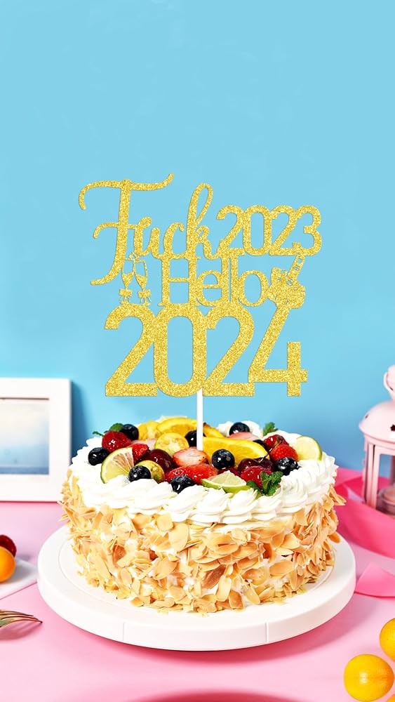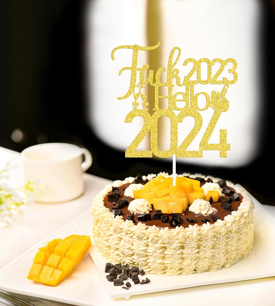 Hello 2024 Cake Topper : Fuck 2023 Hello 2024 slogan, very suitable for your new years party.